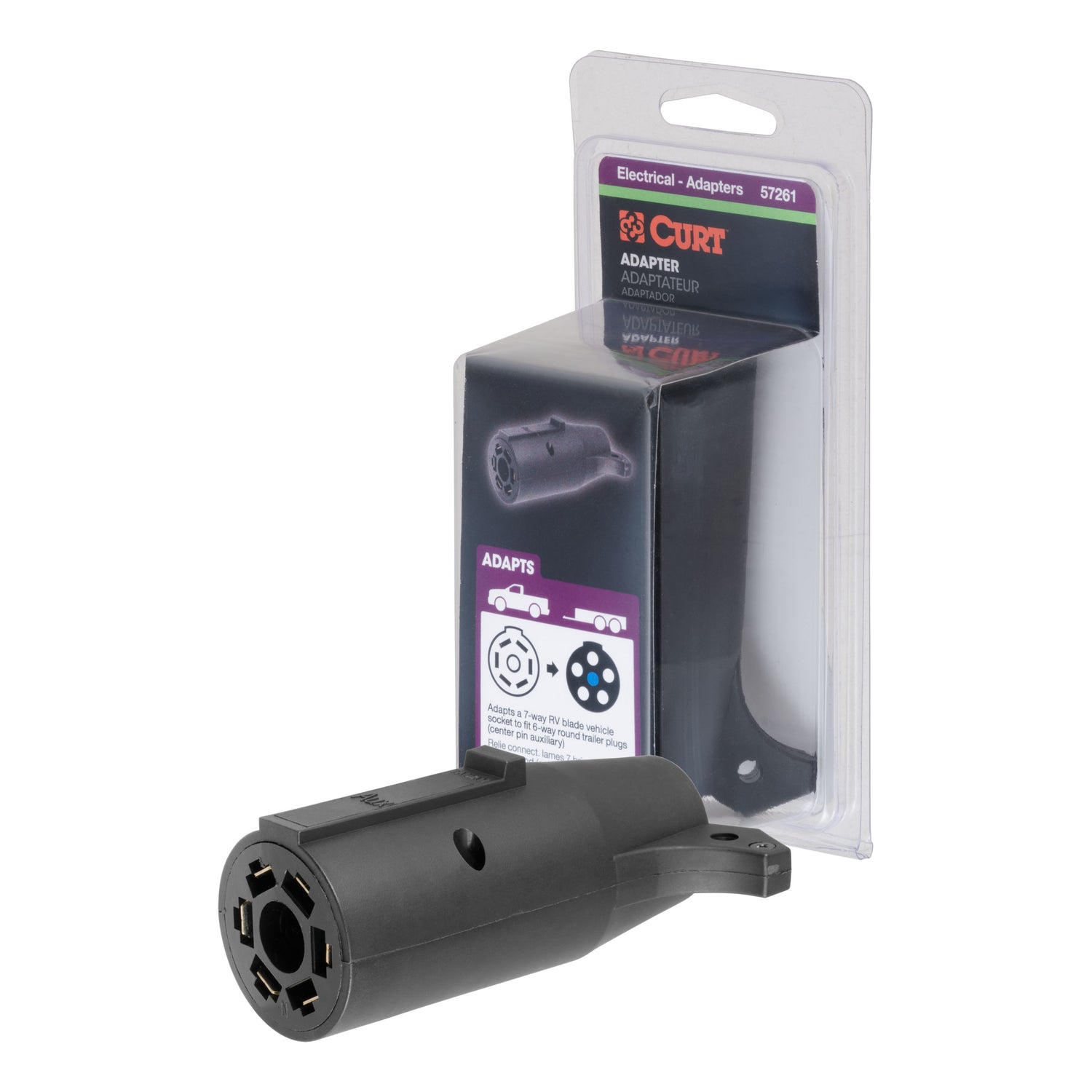 CURT 57261 - Adapter (7-Way RV Blade to 6-Way Round Trailer Center Pin Auxiliary Packaged)