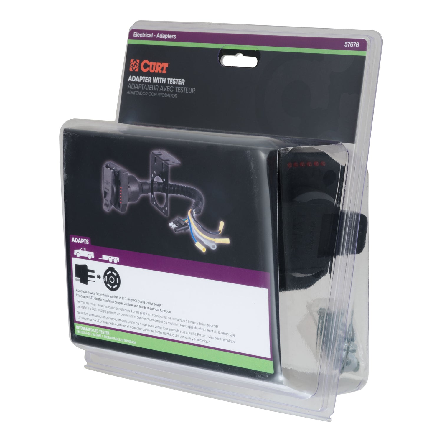 CURT 57676 - Electrical Adapter w/Tester (4-Way Flat Vehicle to 7-Way RV Blade Trailer)