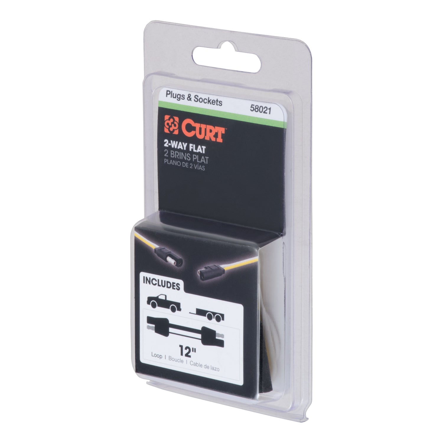 CURT 58021 - 2-Way Flat Connector Plug & Socket w/12in Wires (Packaged)