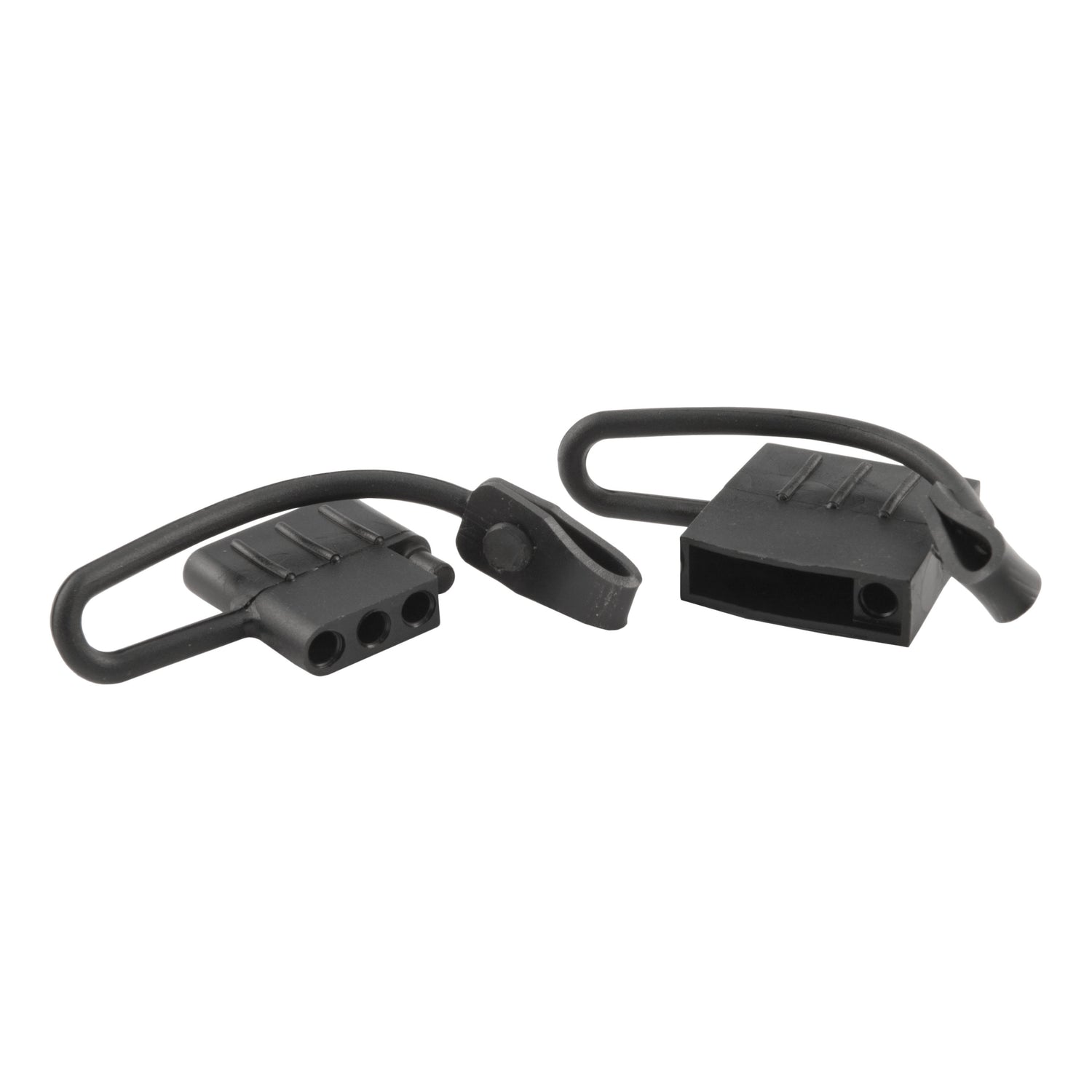 Like trailer hitches and ball mounts, electrical connectors range all over the board in shape, size and capability, but no matter what your trailer's electrical functions are, you need a solid connection to keep the power flowing and ensure safety on the road. CURT electrical connectors are designed and manufactured to give you a reliable connection every time you plug in your trailer. Protect your vehicle-to-trailer wiring connection with CURT electrical plug and socket covers. This set of 4-way flat dust covers features durable black rubber construction to easily resist the elements and maintain good connectivity. The covers come with convenient attachment tabs to avoid loss, and the kit includes both a vehicle-side socket cover and trailer-side plug cover.
