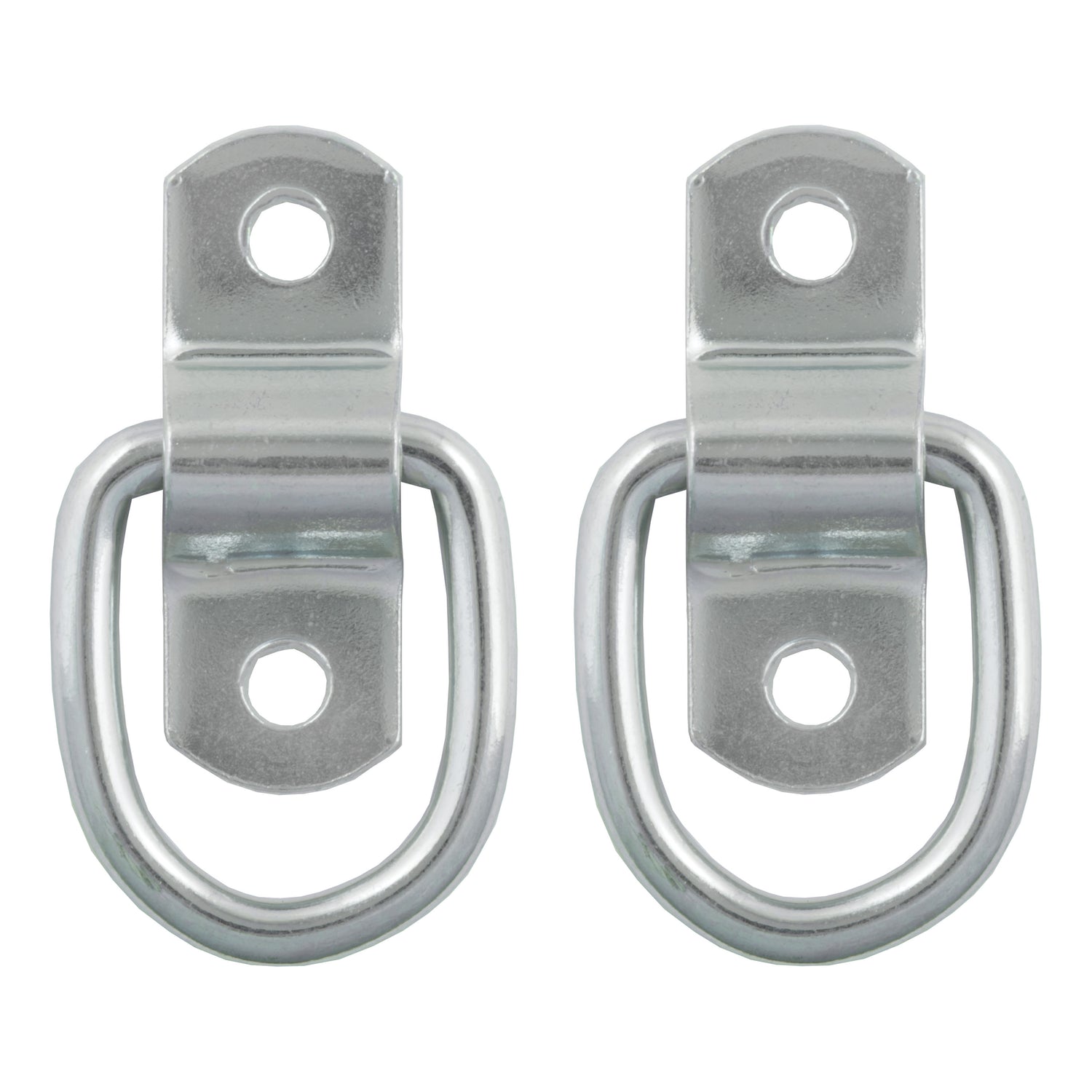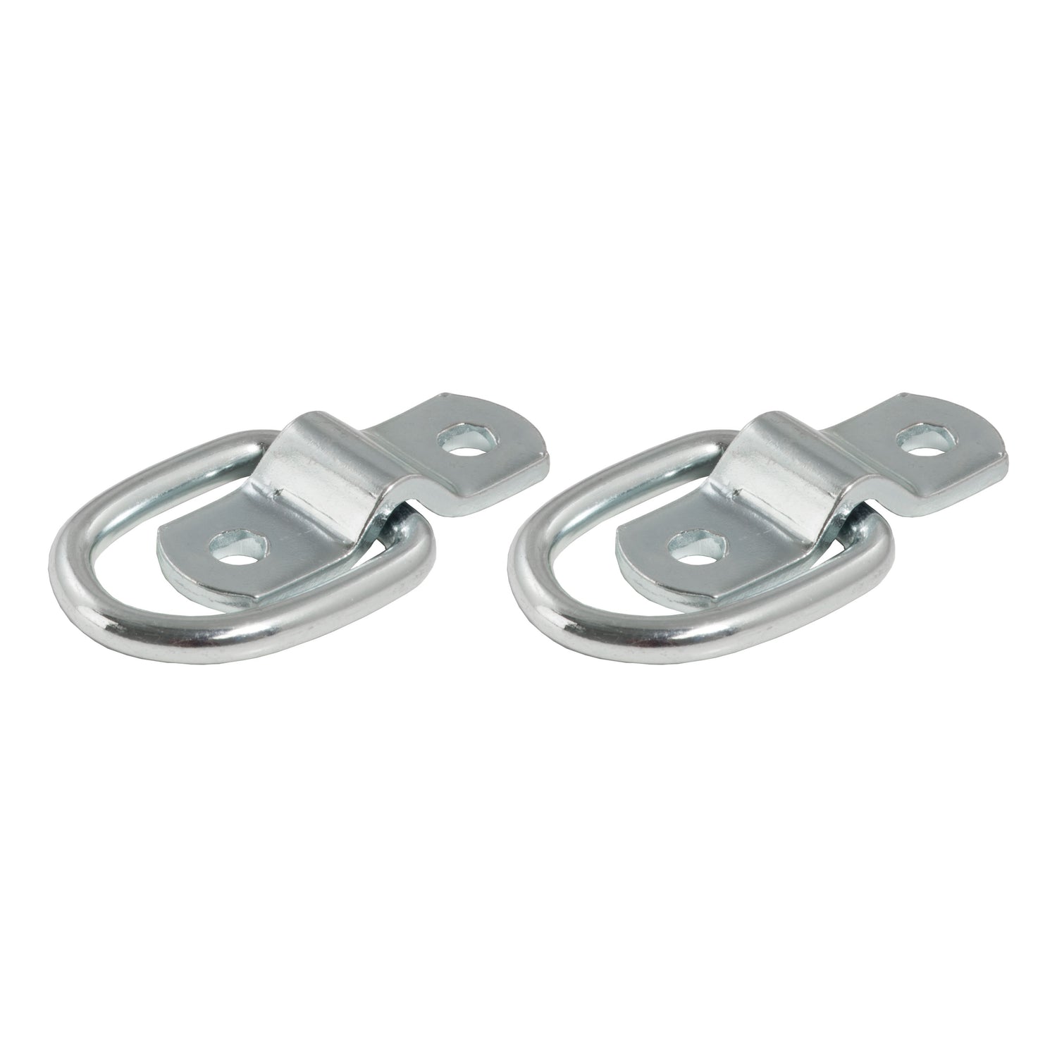 Making sure that your cargo is tied down and fully secure for the journey is important for any towing job. Not only is unsecured cargo a danger to you, your passengers and your fellow drivers, but it can also cause damage to your trailer, pickup truck bed or vehicle cargo area, as well as to the cargo itself. Together with our cargo straps and safety chains, CURT tiedown anchors are easy to mount in any trailer, truck or full-size van, and they help keep your items safe for the road ahead. These particular D-ring tiedown anchors are designed to be surface mounted and add convenient anchoring points for cargo straps, ropes or cables. They comes with a 2-1/4 in. x 13/16 in. mounting bracket with two 1/4 in. diameter mounting holes, spaced 1-1/2 in. apart, center to center. These rope rings feature zinc-plated steel construction and offer a working load capacity of 1,200 lbs. (2,400 lbs. break strength). Mounting screws are not included in this package.