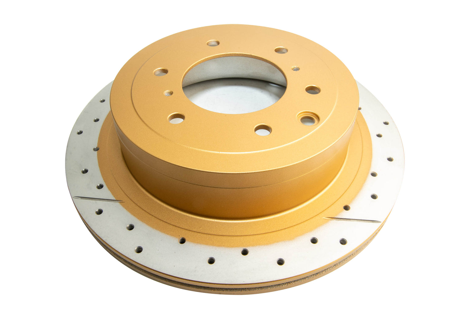 X Gold provides all the benefits of Street Series, with a premium non-directional cross drilled and slotted design, plus an attractive gold finish on the rotor hub.