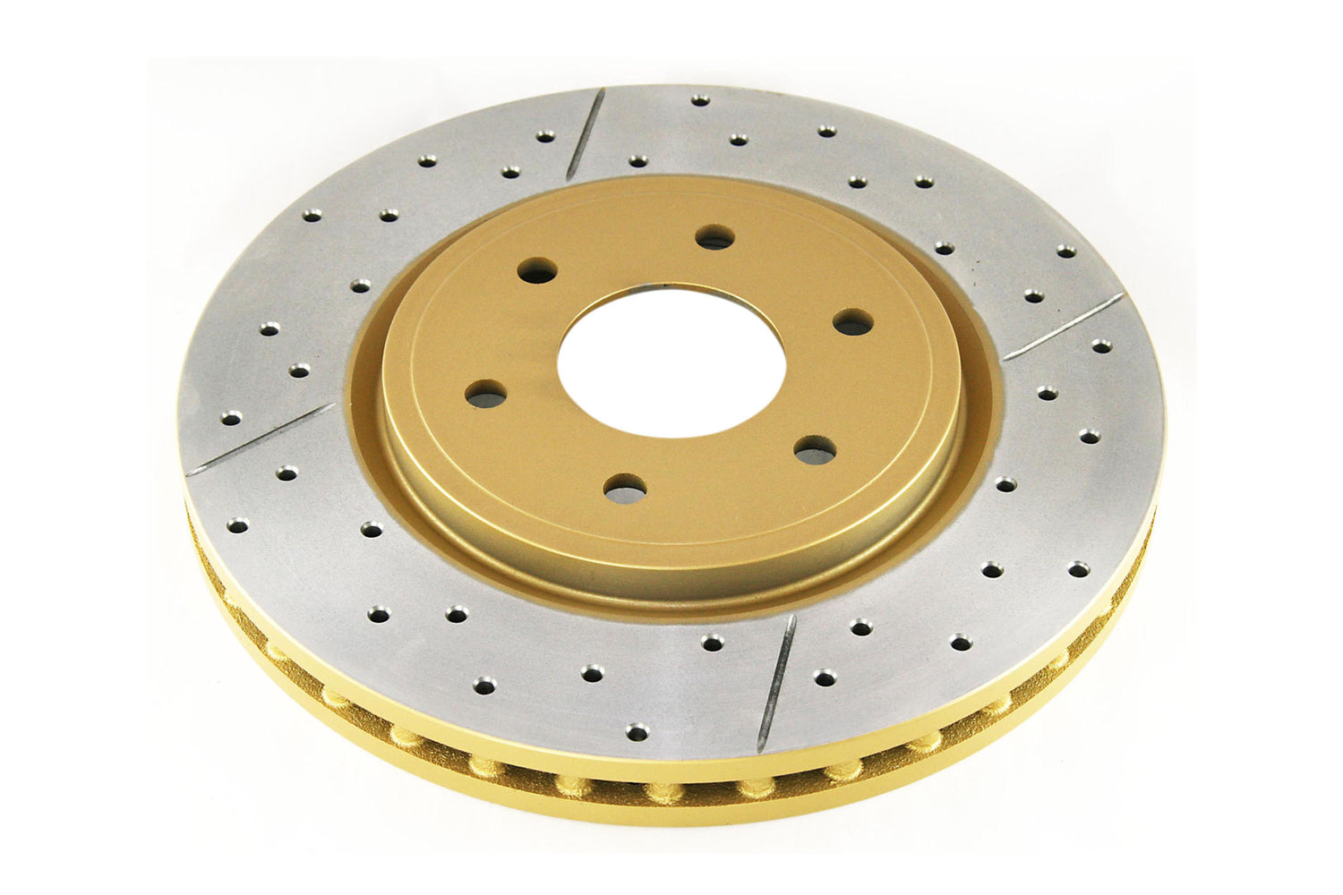 X Gold provides all the benefits of Street Series, with a premium non-directional cross drilled and slotted design, plus an attractive gold finish on the rotor hub.