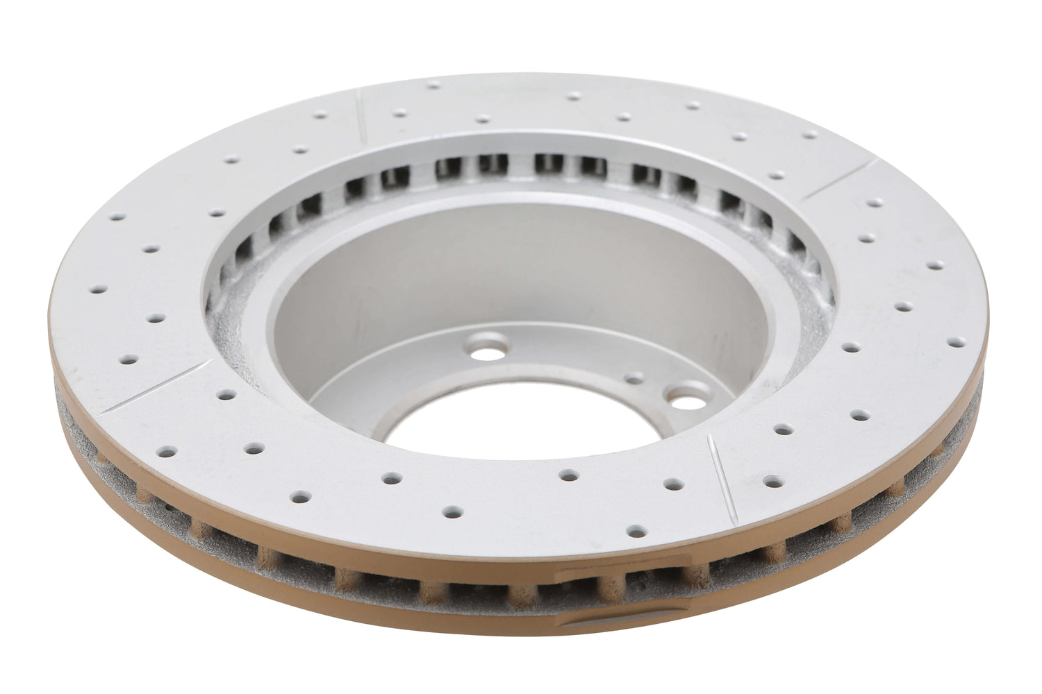 X Gold provides all the benefits of Street Series, with a premium non-directional cross drilled and slotted design, plus an attractive gold finish on the rotor hub.