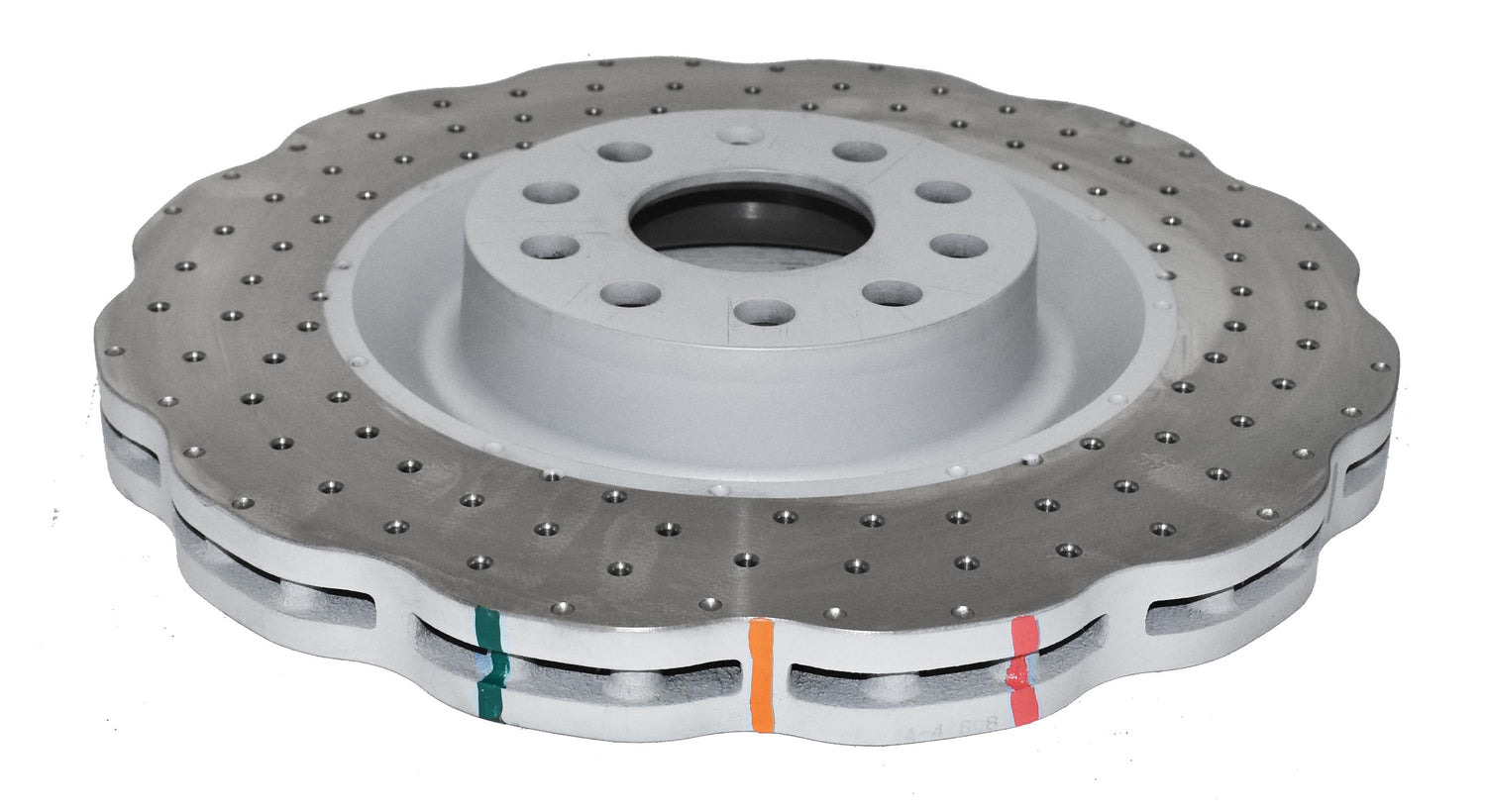 Cast from XG-150 high carbon alloyed iron and undergoing Thermal Stability Profiling. DBA's metallurgy is able to handle the increased stress and heat generated under intense braking application time and time again. Featuring DBA;s patented Kangaroo Paw ventilation that implements a series of 144 diamond and teardrop patterned pillars. DBA achieves up to a 30% increase in surface are and 20% improvement in cooling efficiency compared to traditional straight vane design.