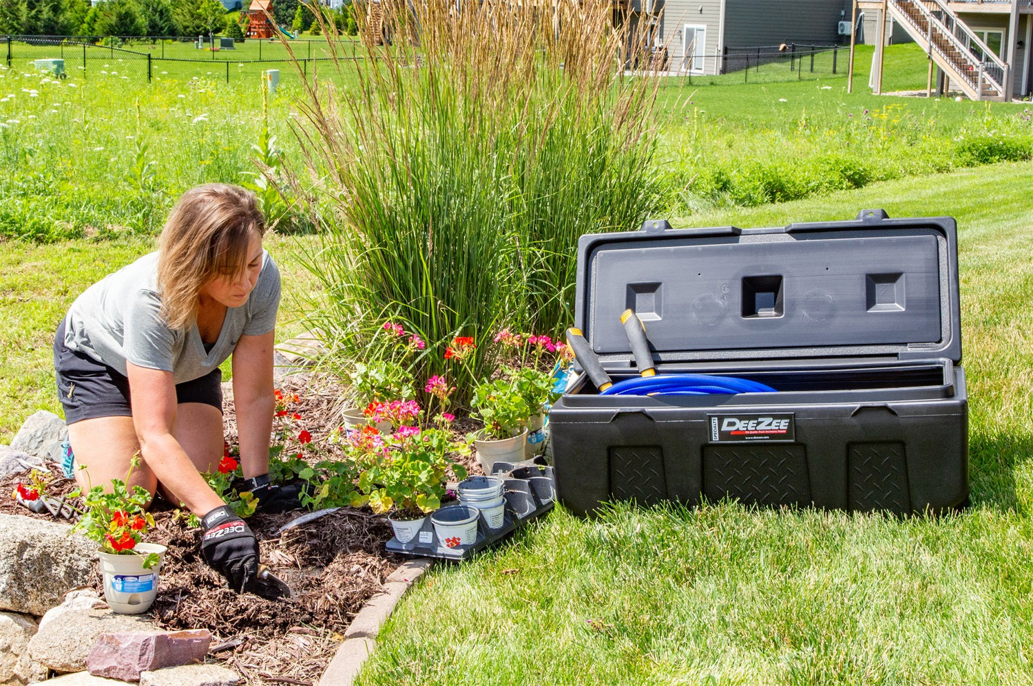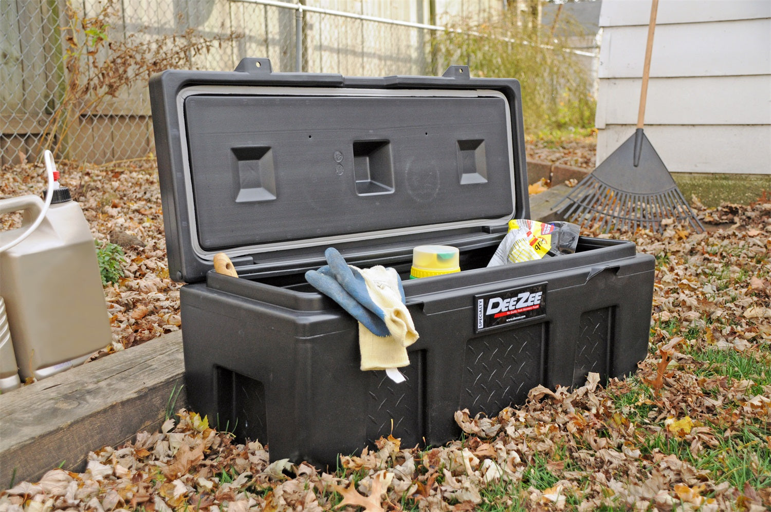 Dee Zee Tool Box - Plastic poly utility chest. Constructed of strong yet lightweight plastic. Built to add quick storage wherever you need it. Truck, trailer, boat, dorm room, garage, barn, workshop or anywhere else you can use storage. Molded cup holders on lid provide convenience. Foam gasket around lid helps makes box weather resistant. Built in locations on lid accept your pad lock for security (pad locks not included).