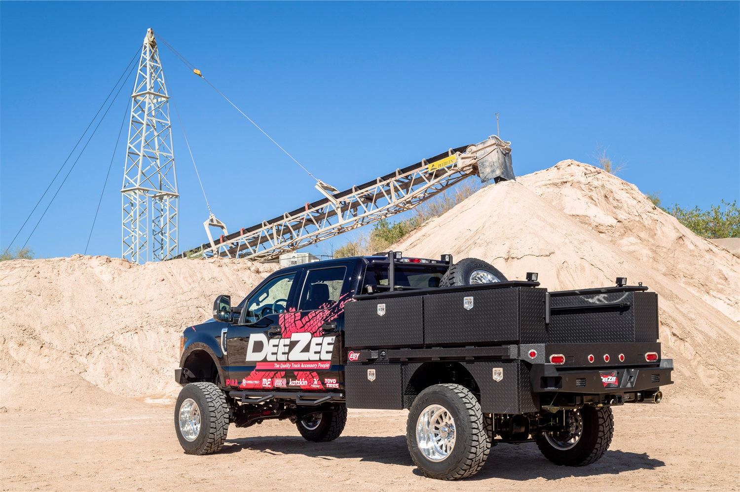 Dee Zee Tool Box - Topsider provides handy storage on top of your trucks bed rail. Constructed of durable Brite-Tread aluminum. Texture Black powder coat, provides a matte black finish while it protects and prevents oxidation. Drop-down doors provide quick access to your tools. Locking stainless steel T-handle latches. C-Channel design resists leaks, incorporating a one-piece neoprene rubber bulb seal.