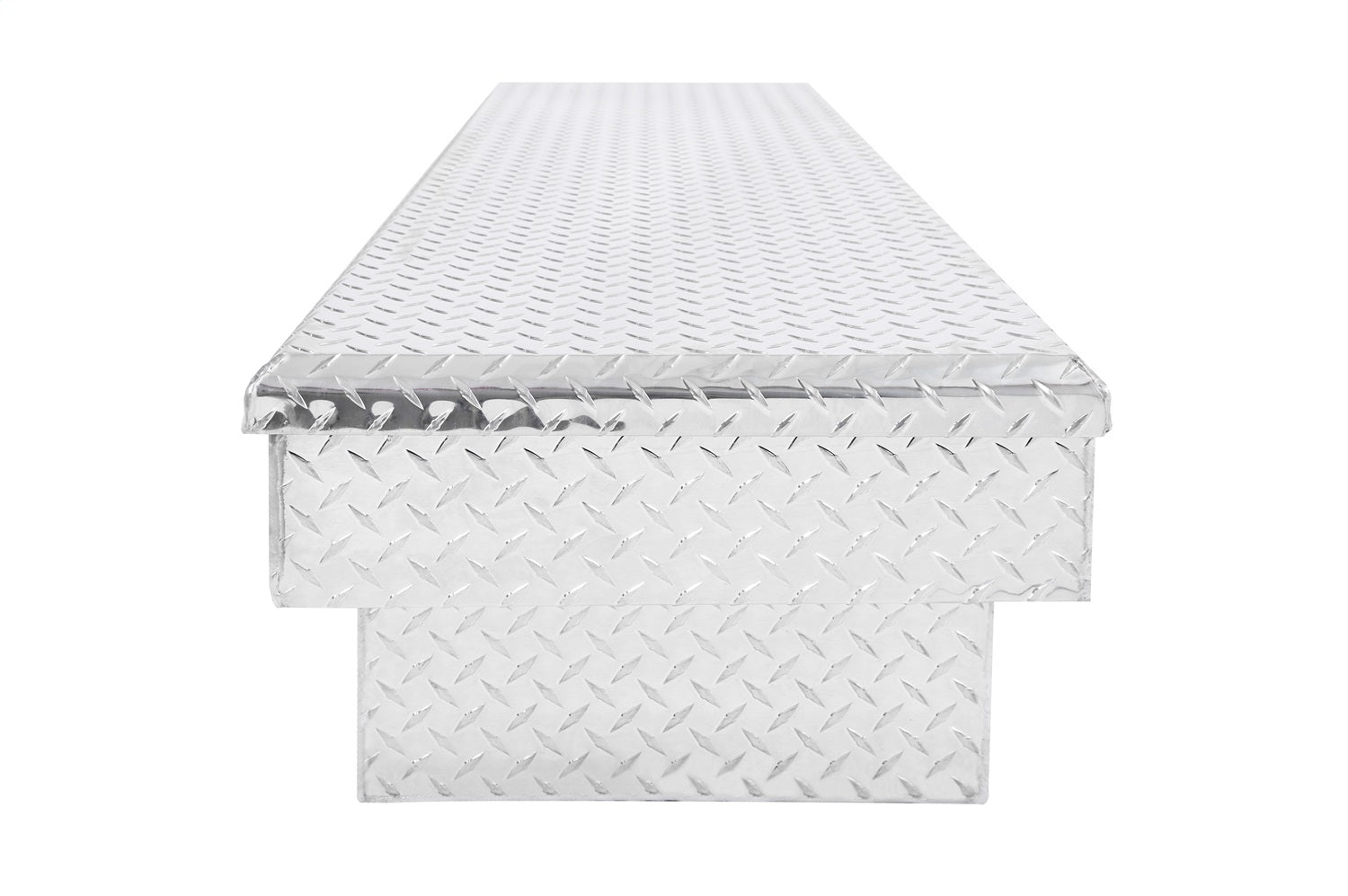 Dee Zee Tool Box - Red Label Single Lid Crossover. Constructed of heavy duty Brite-Tread aluminum. Crown style lid with a full pan double-V stiffener for superior rigidity. Other features: lockable stainless steel paddle handles, dampened gas shocks, closed cell foam gasket, and self-adjusting strikers. Removable plastic tool tray to help keep small items organized.