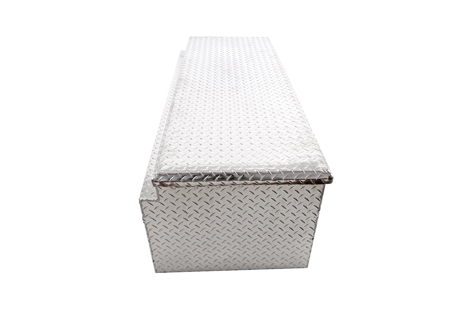 Dee Zee Tool Box - Red Label Chest. Constructed of heavy duty Brite-Tread aluminum. Crown style lid with a full pan double-V stiffener for superior rigidity. Extra wide design for maximum storage space. Other features: lockable stainless steel paddle handles, dampened gas shocks, closed cell foam gasket, and self-adjusting strikers.