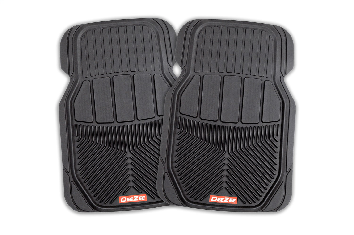 Dee Zee Floor Mats - Protects the interior of your vehicle. Constructed of thick, tough, and durable OEM-style rubber. Deep groves hold water, mud, and snow - keeping it away from your vehicles interior. Raised pattern to increase traction. Rubber cleats on bottom keep mat in position. Sold in pairs. Universal fit - trim-able design to fit nearly any vehicle.