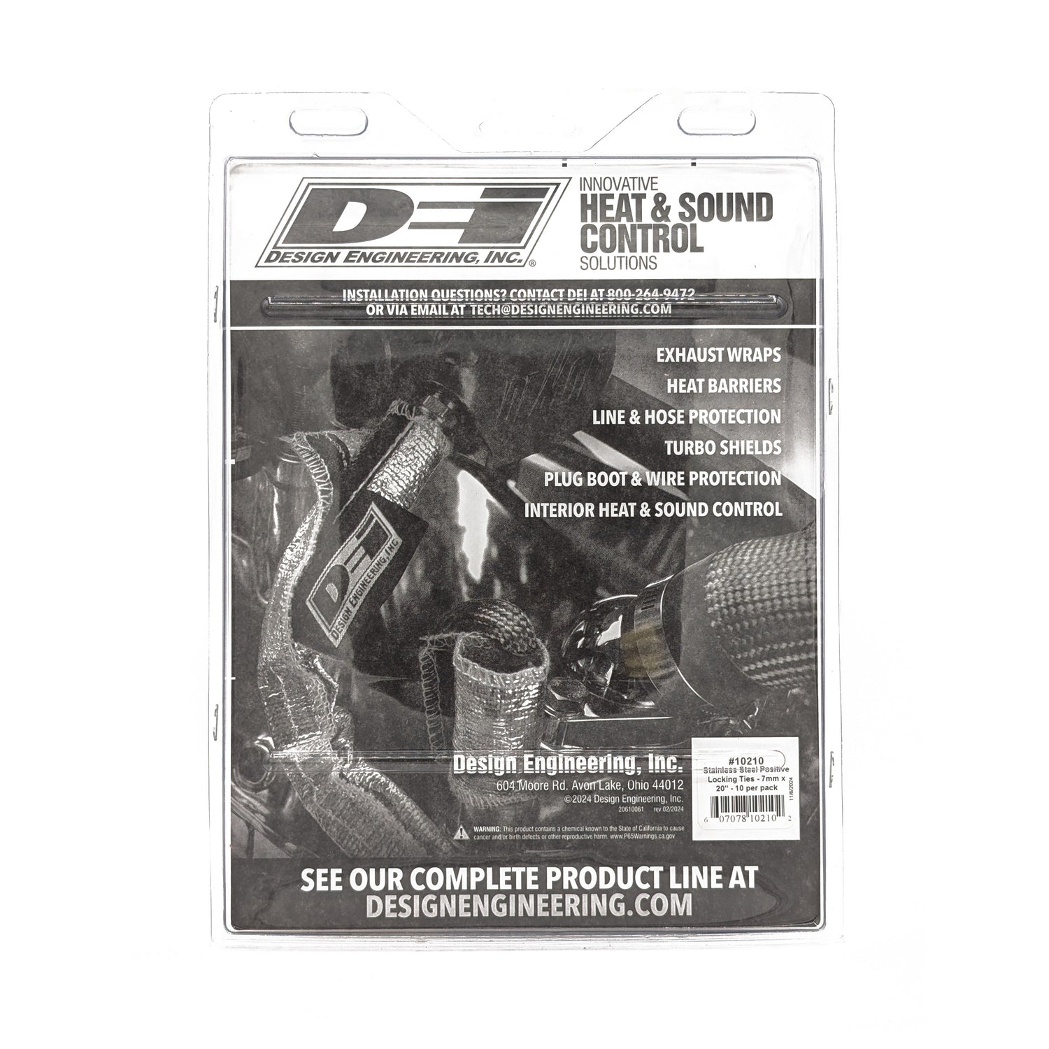 Stainless-Steel Positive Locking Ties secure exhaust wrap and solves the problem of needing a locking tie in high heat areas. Stainless-Steel Positive Locking Ties are designed for high heat applications. With it's self-locking design they are great for securing DEI exhaust wrap to pipes or any place a high strength tie is needed. UV and corrosion resistant they will last for many years under severe use. Locking Ties offer many other uses including bundling wires, hoses, and other forms of insulation products. Just slide end into locking mechanism and pull tight. Made from 316 Stainless Steel Tensile Strength: 5/16 in. 200 lbs., 1/2 in. 350 lbs. Capable of withstanding temperatures in excess of 2500°F Fits up to 6 in. O.D.