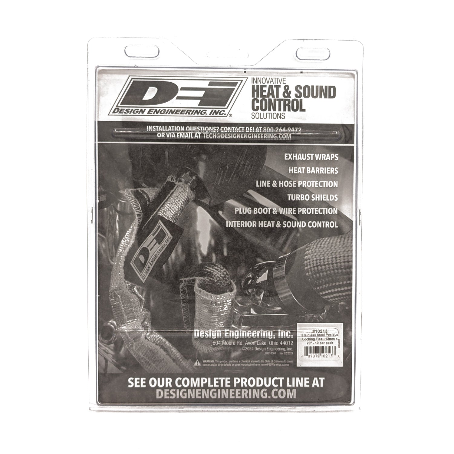 Stainless-Steel Positive Locking Ties secure exhaust wrap and solves the problem of needing a locking tie in high heat areas. Stainless-Steel Positive Locking Ties are designed for high heat applications. With it's self-locking design they are great for securing DEI exhaust wrap to pipes or any place a high strength tie is needed. UV and corrosion resistant they will last for many years under severe use. Locking Ties offer many other uses including bundling wires, hoses, and other forms of insulation products. Just slide end into locking mechanism and pull tight. Made from 316 Stainless Steel Tensile Strength: 5/16 in. 200 lbs., 1/2 in. 350 lbs. Capable of withstanding temperatures in excess of 2500°F Fits up to 6 in. O.D.