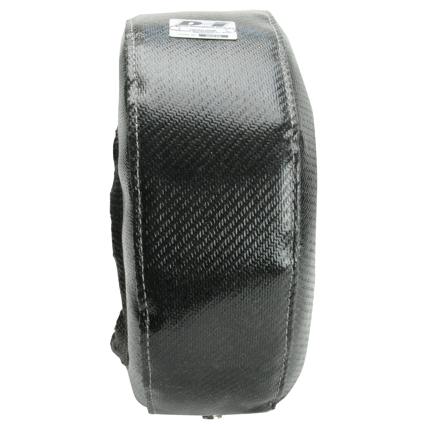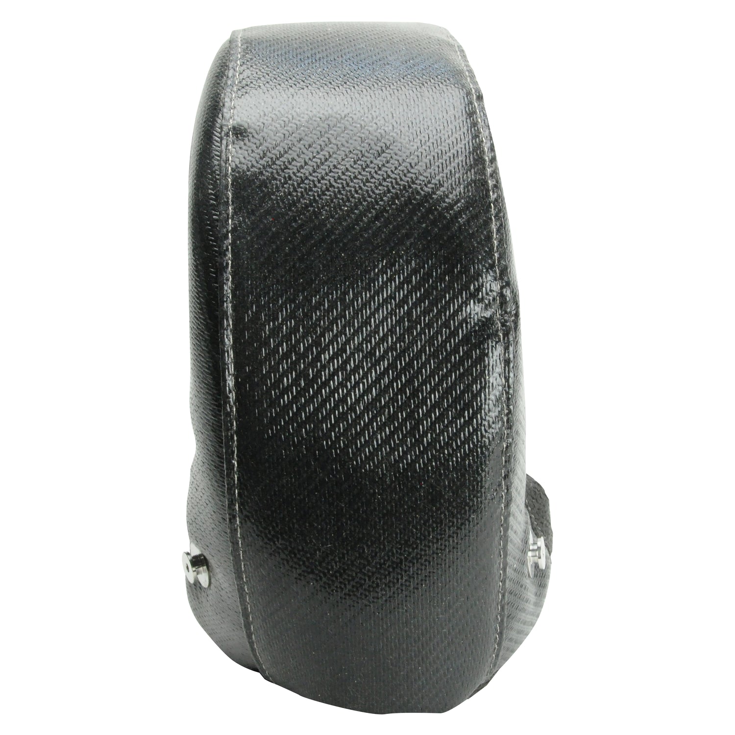 We raised the bar. The most technologically advanced turbo shield ever! We incorporated all our experience to build the absolute best turbo shield on the market. By developing advanced textiles and diving deep into what is needed to control turbo heat, we developed the GEN-3 Onyx Black Turbo Shield. A Silicone coated Onyx Black outer layer with multiple stainless steel and silica inner layers. Without a doubt the strongest, most heat resistant shield available. OUTER SHELL - Coated in silicone to insulate and hold up under extreme conditions. - Prevents fraying & encases seams to make them over 4 times stronger INSULATION LAYER - Thick layer of silica insulation keep heat in turbo shield and turbo housing. - Silica has a low thermal conductivity making one of the best insulators. INNER LAYER - Stainless steel, glass fiber & silicone adds to insulating and thermal properties. - Increases seam strength, durability and insulation value. INNER COVER - Stainless Steel fabric holds up against the highest temps. - Will not break down or become brittle with heat. Measuring your turbo size DEI Turbo shield sizes are based on two basic measurements. The first measurement is the circumference of the turbo not including the flange. The second measurement is the width of the turbo at it's widest point not including the flanges. After measuring, refer to the chart below to find the correct shield. Our T22 and T25/28 shields are designed for use on internally gated housings. They will have a cutout in the wastegate area to allow for a tight fitment. TURBO MEASUREMENTS CHART TURBO - CIRCUMFERENCE - WIDTH T22 - 15" - 2.25" T25/28 - 15" / 16" - 2.5" T3 - 15" / 16" - 2.5" T4 - 20" / 22" - 2.75" T6 - 26" - 3.75"