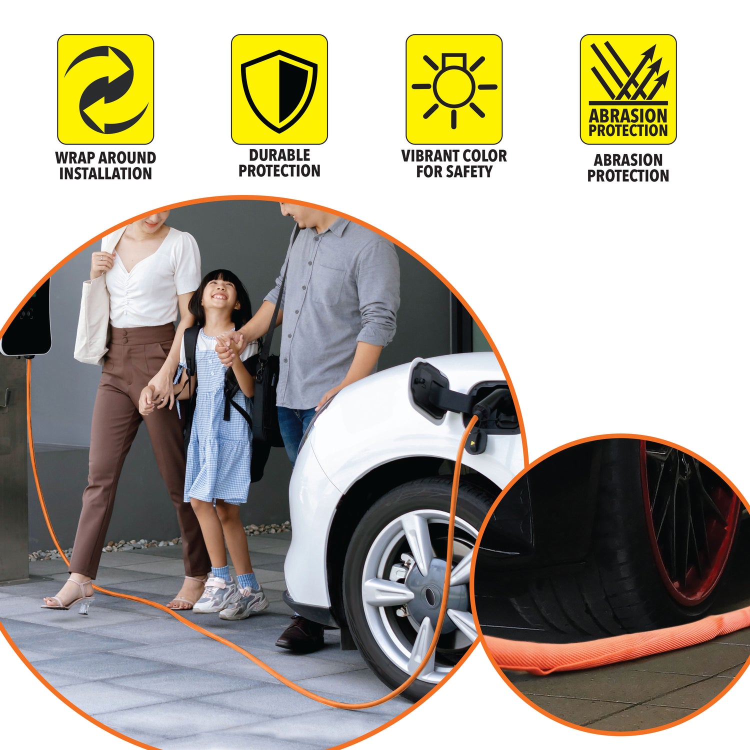 Hose and Wire Sleeve - EV Charge Cord - 3/4 to 1 in OD - 20 ft - Nylon - Orange - Each