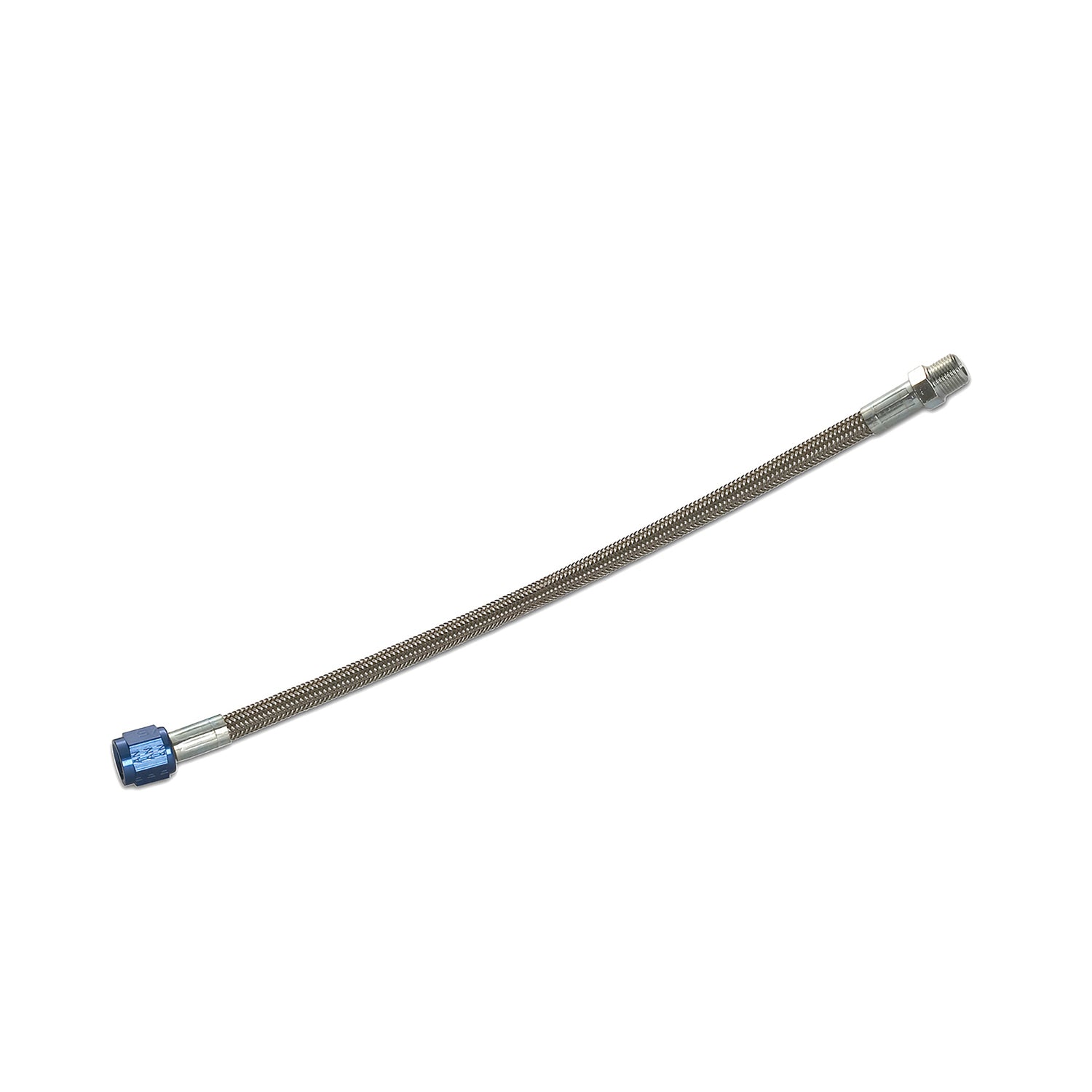 One stainless steel braided hose, 1 foot length, sized -4AN Female End And 1/8 NPT Male End. (Available While Supplies Last)