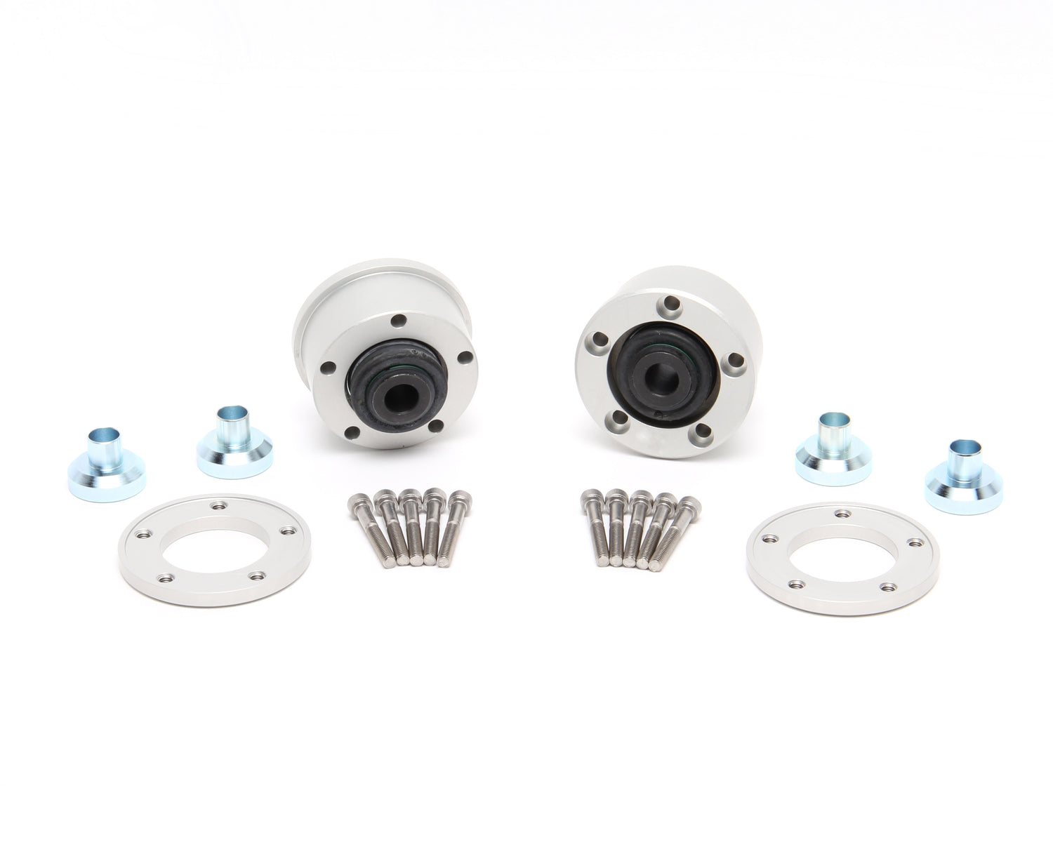 The Dinan Monoball Kit provides responsiveness you can feel by replacing the rubber bushings in the thrust arms with precision ball joints and machined aluminum housings. Improves responsiveness by eliminating the deflection inherent in the stock rubber bushings while also reducing brake shimmy. The quietest bearings on the market are virtually noise-free so you can live with them every day. These are the only bearings on the market that are sealed using a rubber boot to keep out dirt and road grime stopping them from wearing out prematurely.