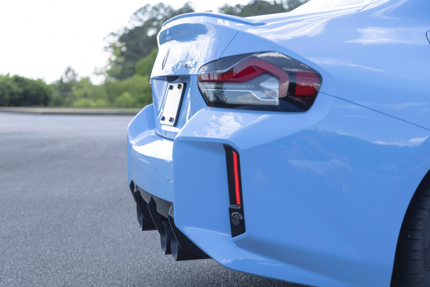 Visually, the Dinan G87 M2 exhaust has been skillfully crafted entirely out of T304 stainless steel and TIG welded for the best visual appearance and color. The entire system is then brush finished to further guarantee an immaculate looking system out of the box. The attention to detail is not limited to parts of the system you can't see once the exhaust is installed but is also extended to the exhaust tips themselves. The Dinan exhaust includes massive, quad 4.5-inch (114mm) clamp-on, double-walled, black ceramic coated and laser engraved exhaust tips. Despite the seemingly cartoonish size on paper, the tips mesh seamlessly and fill the factory cut-outs to complete the OEM+ look with a healthy dose of audible attitude.