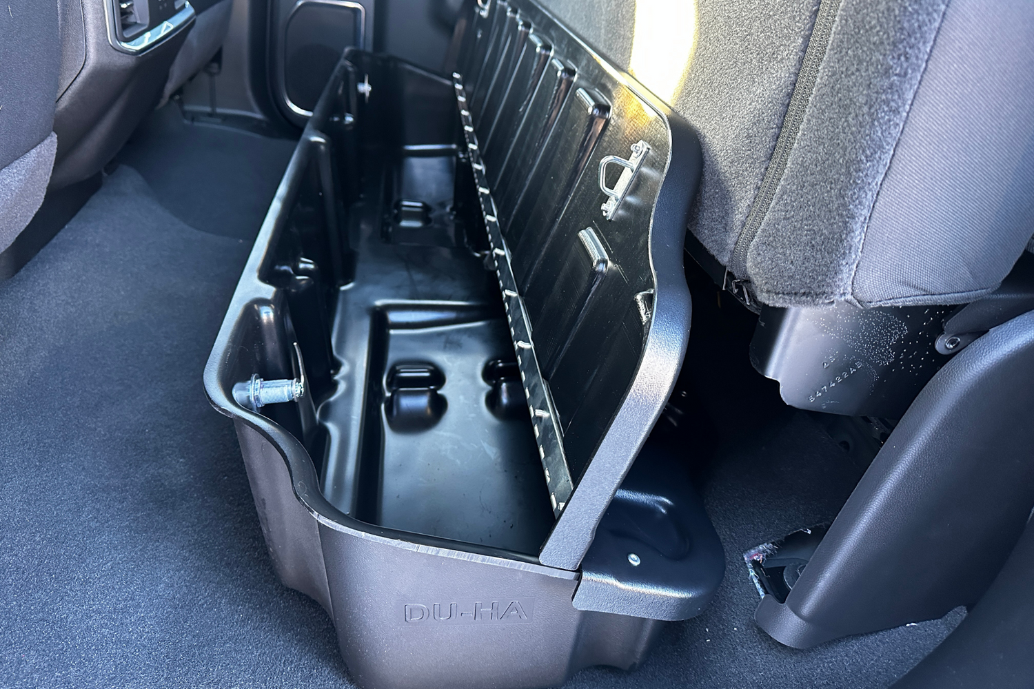 DU-HA 10430 - DÜHA Lockable Under Seat Storage fits 19-25 Chevy Silveradovy-/GMC Sierra Light Duty Crew Cab & 20-25 Heavy Duty New Body Style Double Cab - Black Heavy-Duty Back Seat Lockbox, Includes 2 Keys - Black