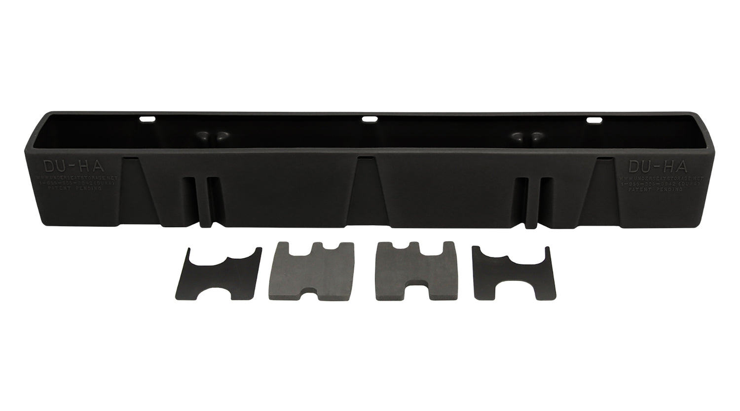 Whether you're a contractor, sports enthusiast, or anyone who values organized and secure storage, the DÜHA Behind-the-seat Storage System is the ultimate under seat truck storage solution for seamless truck storage integration. This innovative truck storage system maximizes space, enhances organization, and keeps your guns, tools, and gear safe and secure. Proudly roto-molded and Made in the USA, the DÜHA Behind-the-seat Storage System comes with a lifetime warranty, reflecting the manufacturer's confidence in its quality and durability. The DÜHA Behind-the-seat Storage System features a durable, heavy-duty roto-molded construction which doesn't allow for flexing and bending. It also includes an easily removable two-piece gun rack/organizer, making it compliant with legal gun case regulations in most states. This allows you to safely store up to two guns which both can be equipped with scopes. You can also remove the dividers to store larger items. The DÜHA Behind-the-seat Storage System seamlessly integrates into your truck's interior, providing a factory-like appearance. It's make/model-specific fit guarantees optimal use of available space without taking up leg room. Elevate the organization and security of your truck's interior with this reliable and purpose-built behind-the-seat storage system. Fitment Notes: Instructions are available with purchase or at our resources page. This DÜHA Behind-the-seat Storage System is custom designed to fit specific Y/M/M regular cab trucks and will not fit SuperCab and SuperCrew trucks.