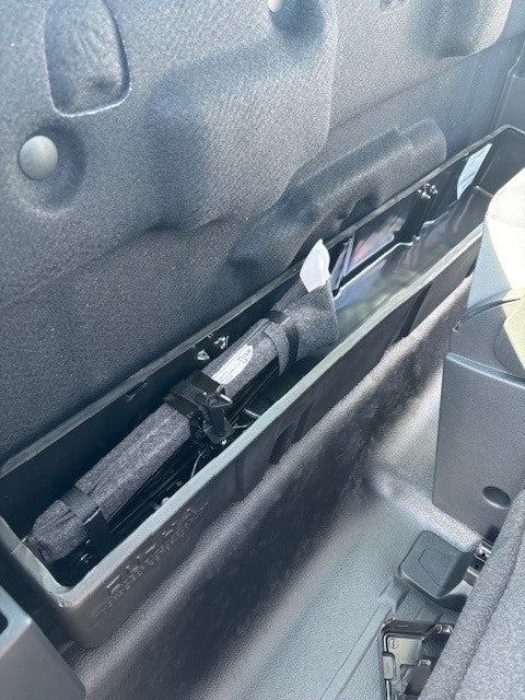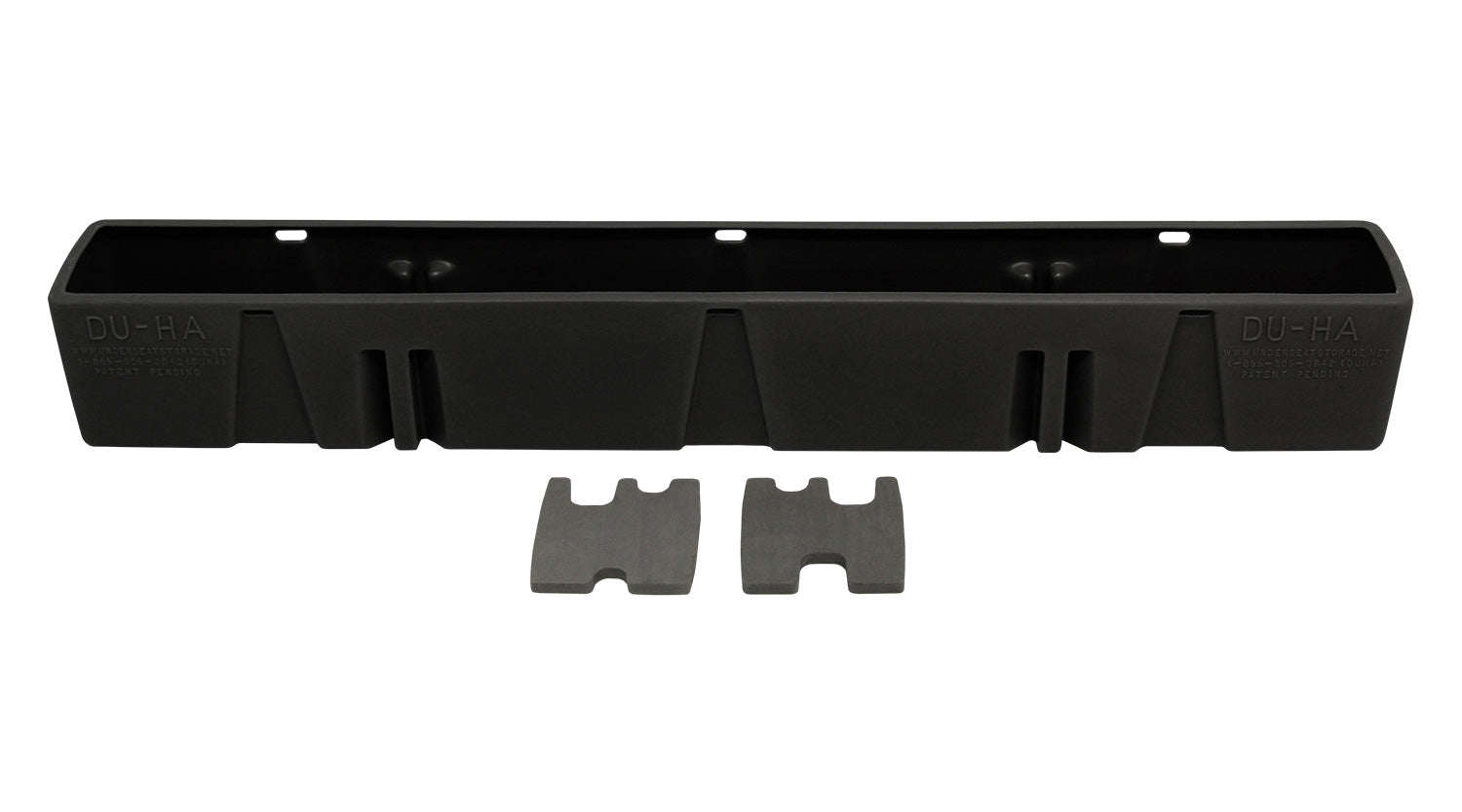 Whether you're a contractor, sports enthusiast, or anyone who values organized and secure storage, the DÜHA Behind-the-seat Storage System is the ultimate under seat truck storage solution for seamless truck storage integration. This innovative truck storage system maximizes space, enhances organization, and keeps your guns, tools, and gear safe and secure. Proudly roto-molded and Made in the USA, the DÜHA Behind-the-seat Storage System comes with a lifetime warranty, reflecting the manufacturer's confidence in its quality and durability. The DÜHA Behind-the-seat Storage System features a durable, heavy-duty roto-molded construction which doesn't allow for flexing and bending. It also includes an easily removable two-piece gun rack/organizer, making it compliant with legal gun case regulations in most states. This allows you to safely store up to two guns which both can be equipped with scopes. You can also remove the dividers to store larger items. The DÜHA Behind-the-seat Storage System seamlessly integrates into your truck's interior, providing a factory-like appearance. It's make/model-specific fit guarantees optimal use of available space without taking up leg room. Elevate the organization and security of your truck's interior with this reliable and purpose-built behind-the-seat storage system. Notes: ATTENTION 2024 F-150 Regular Cab Owners: In 2024, Ford changed the F-150's rear bulkhead liner, causing it to protrude with empty space behind it. Push in the carpeted part to fit the DÜHA box correctly. Consider trimming the foam bottom of the jack attachment or the box itself to accommodate the new carpet bulkhead. Without trimming, the box will still fit but sit slightly higher. We recognize this isn't ideal, however this is our workaround for Ford's modification (See pictures 6-7 or call for help). This DÜHA Behind-the-seat Storage System is custom designed to fit specific Y/M/M regular cab trucks and will not fit SuperCab and SuperCrew trucks.