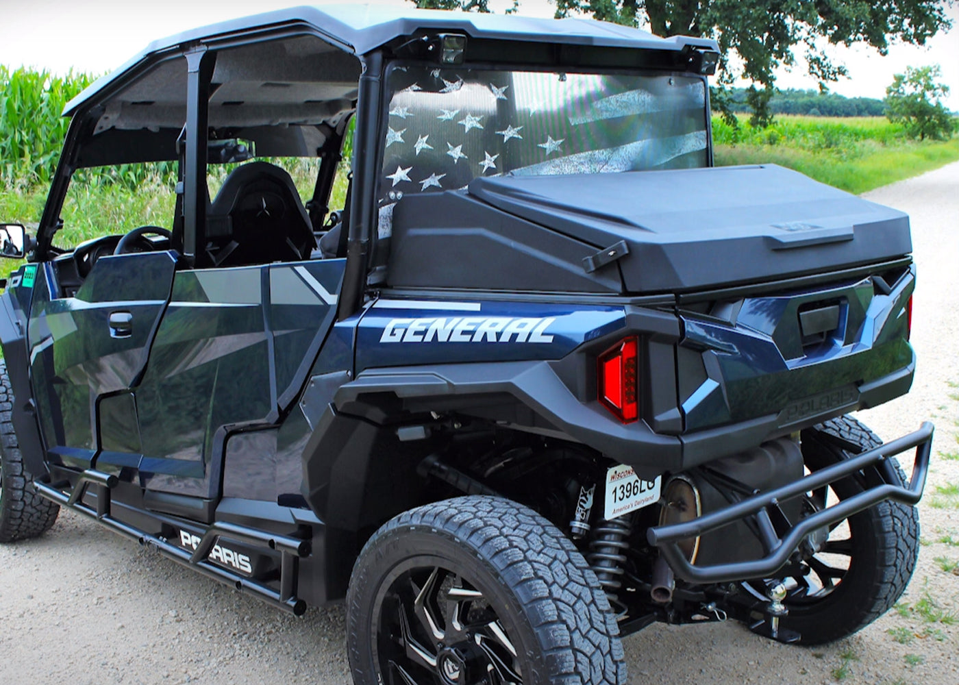 This slant back low-profile topper flips open for easy access and when closed protects against theft, losing items on rough terrain, and of course the elements. Go further with this made in the USA, limited lifetime warranty UTV bed cover.