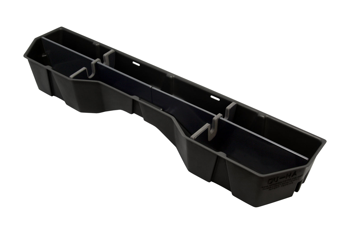 Whether you're a contractor, sports enthusiast, or anyone who values organized and secure storage, the DÜHA Underseat Storage System is the ultimate under seat truck storage solution for seamless truck storage integration. This innovative truck storage system is stronger than factory dividers, maximizes space, enhances organization, and keeps your guns, tools, and gear safe and secure. Proudly roto-molded and Made in the USA, the DÜHA Underseat Storage System comes with a lifetime warranty, reflecting the manufacturer's confidence in its quality and durability. The DÜHA Underseat Storage System features a durable, heavy-duty roto-molded construction which doesn't allow for flexing and bending. It also includes an easily removable two-piece gun rack/organizer, making it compliant with legal gun case regulations in most states. This allows you to safely store up to two guns without scopes. You can also remove the dividers to store larger items. The DÜHA Underseat Storage System seamlessly integrates into your truck's interior, providing a factory-like appearance. It's make/model-specific fit guarantees optimal use of available space without taking up leg room. Elevate the organization and security of your truck's interior with this reliable and purpose-built under seat storage system. Fitment Notes: If you have a factory divider, it will have to be removed. Instructions are available with purchase or at our resources page. This DÜHA Underseat Storage System is custom designed to fit specific Y/M/M king cab and crew cab trucks.