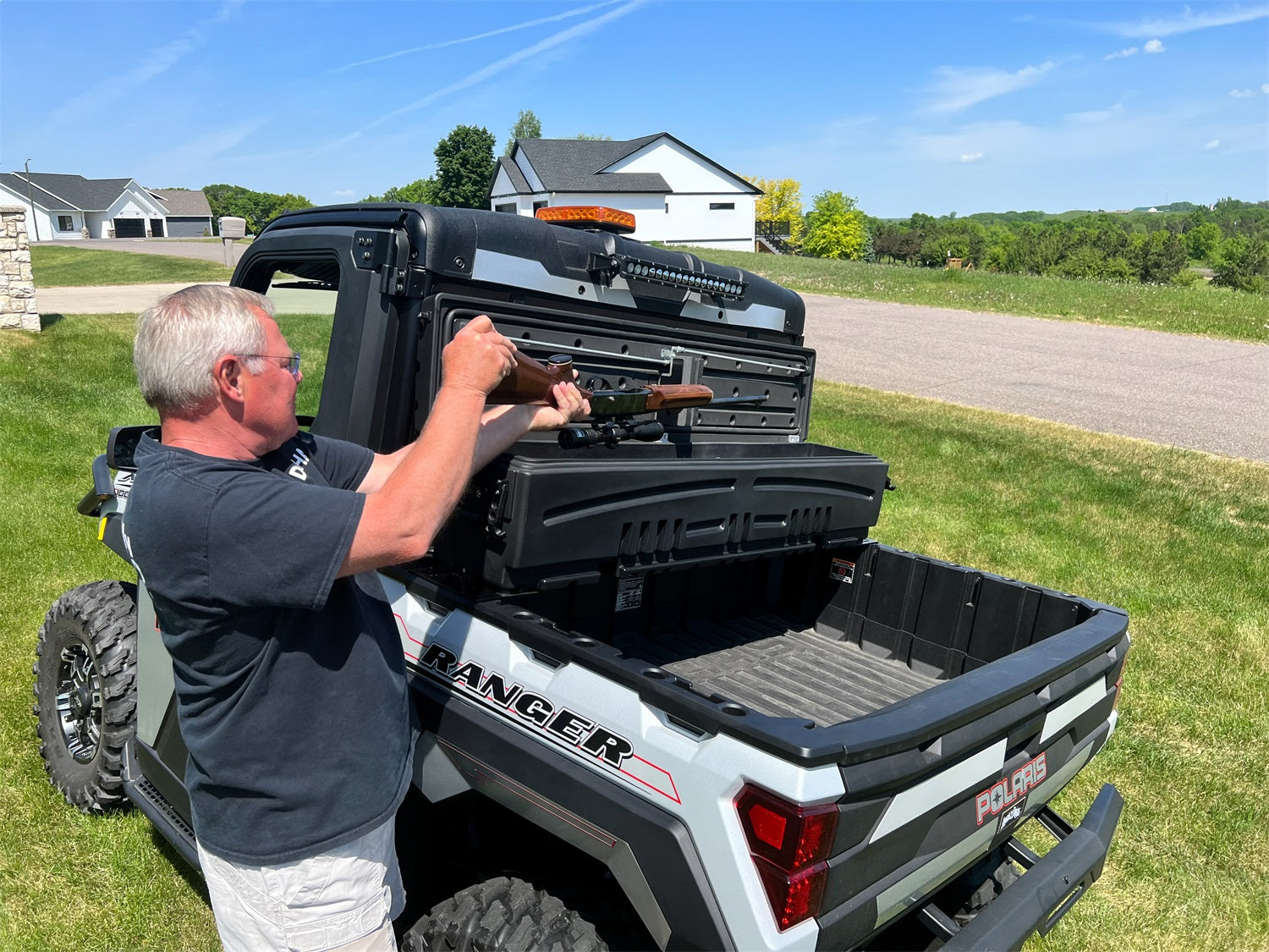 No more losing and breaking valuables. Secure your guns, tools, and gear in this lockable UTV gun case/toolbox accessory. Do more outdoors and less messing around with this convenient, made in the USA, lifetime warranty UTV storage box.