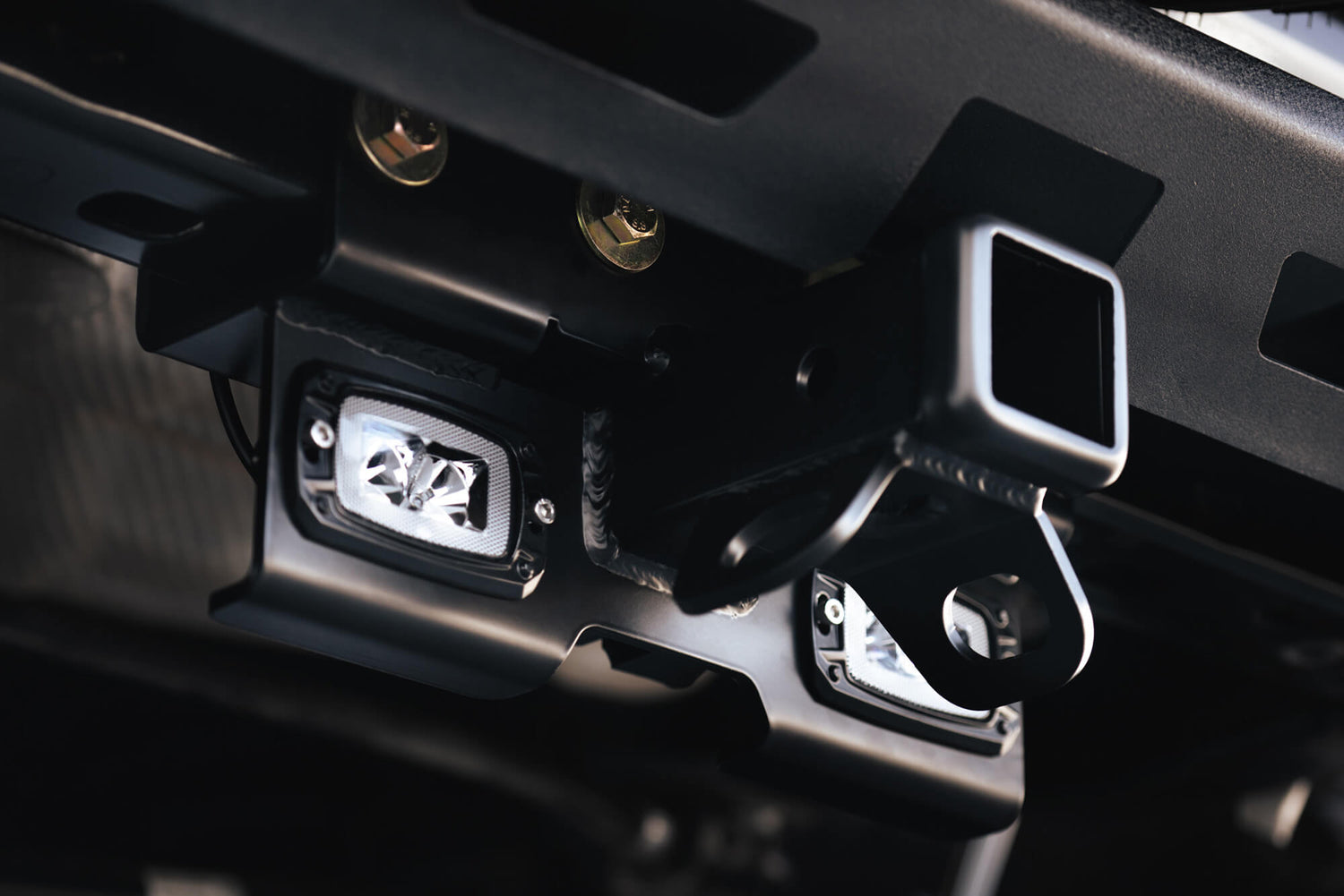 Using the factory location, our 2-inch accessory hitch combines the need for a rear hitch and auxiliary lighting. Designed to work with OEM bumpers and all DV8 Offroad non-hitch equipped bumpers, the AHJP-01 comes with (2) 2-inch LEDs that are protected by the thick steel of the hitch.