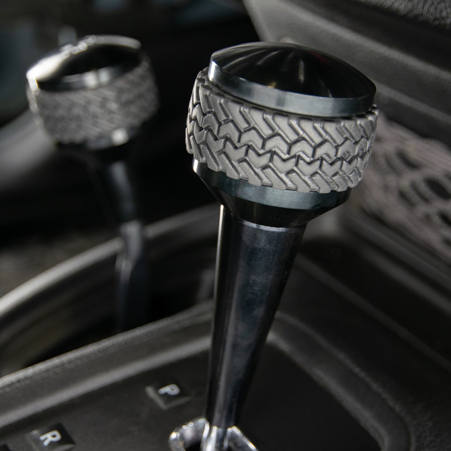 DV8 Off Road's shift knobs are made from billet aluminum and feature our patented Tired Tread design grip which not only feels good when resting your hand on it, but also provides a better tactile feel when it comes time to throw a shift.