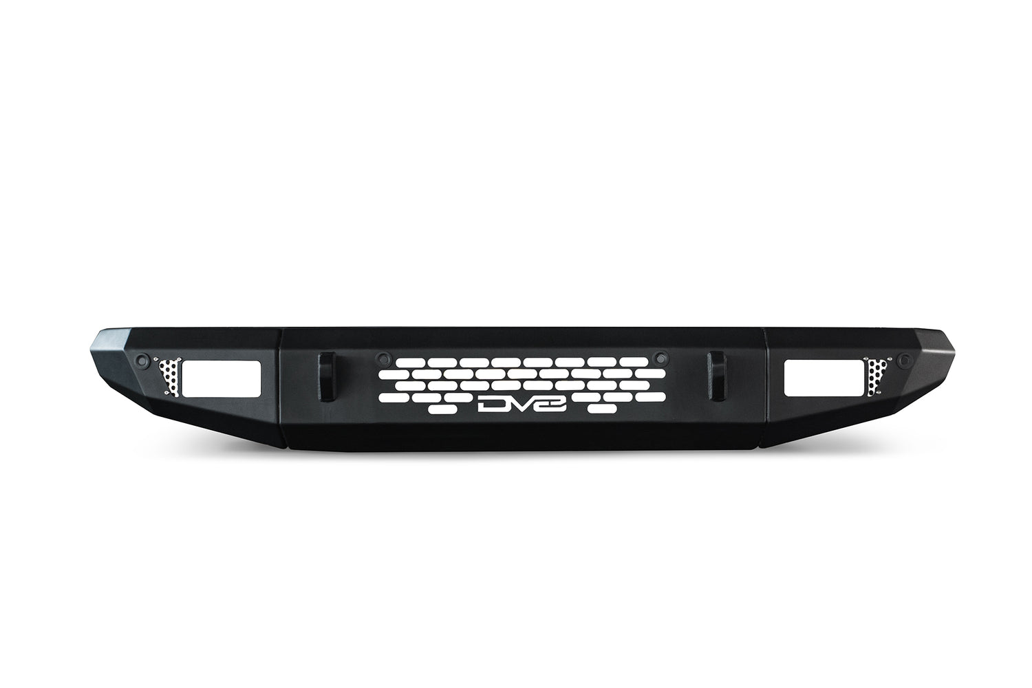 Behind this cutaway pattern, a Dual Row 20-inch LED light bar can mounted. It features pod light mounts on each side of the bumper, that fit 2 pods each.