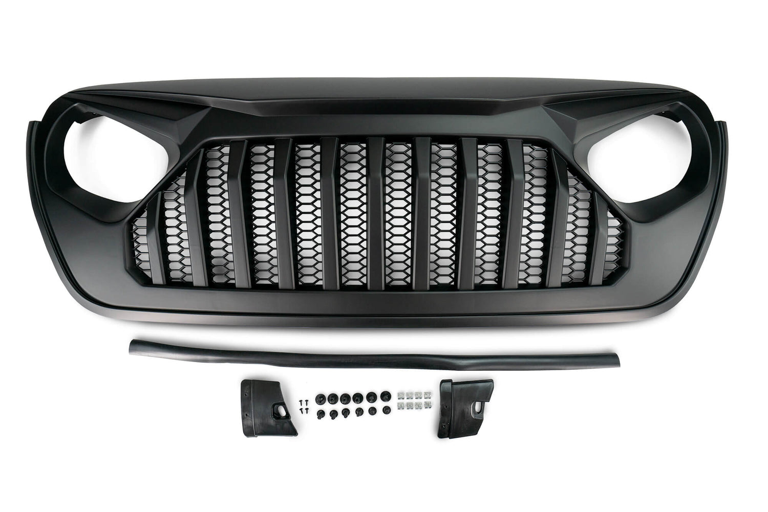 DV8 Offroad Jeep JL Replacement Grill, Black. The DV8 Offroad GRJL-01 replacement grill adds a menacing look to the front end of your ride. With the JL’s larger 9 inch headlights, the angry eye look has never been so mean.