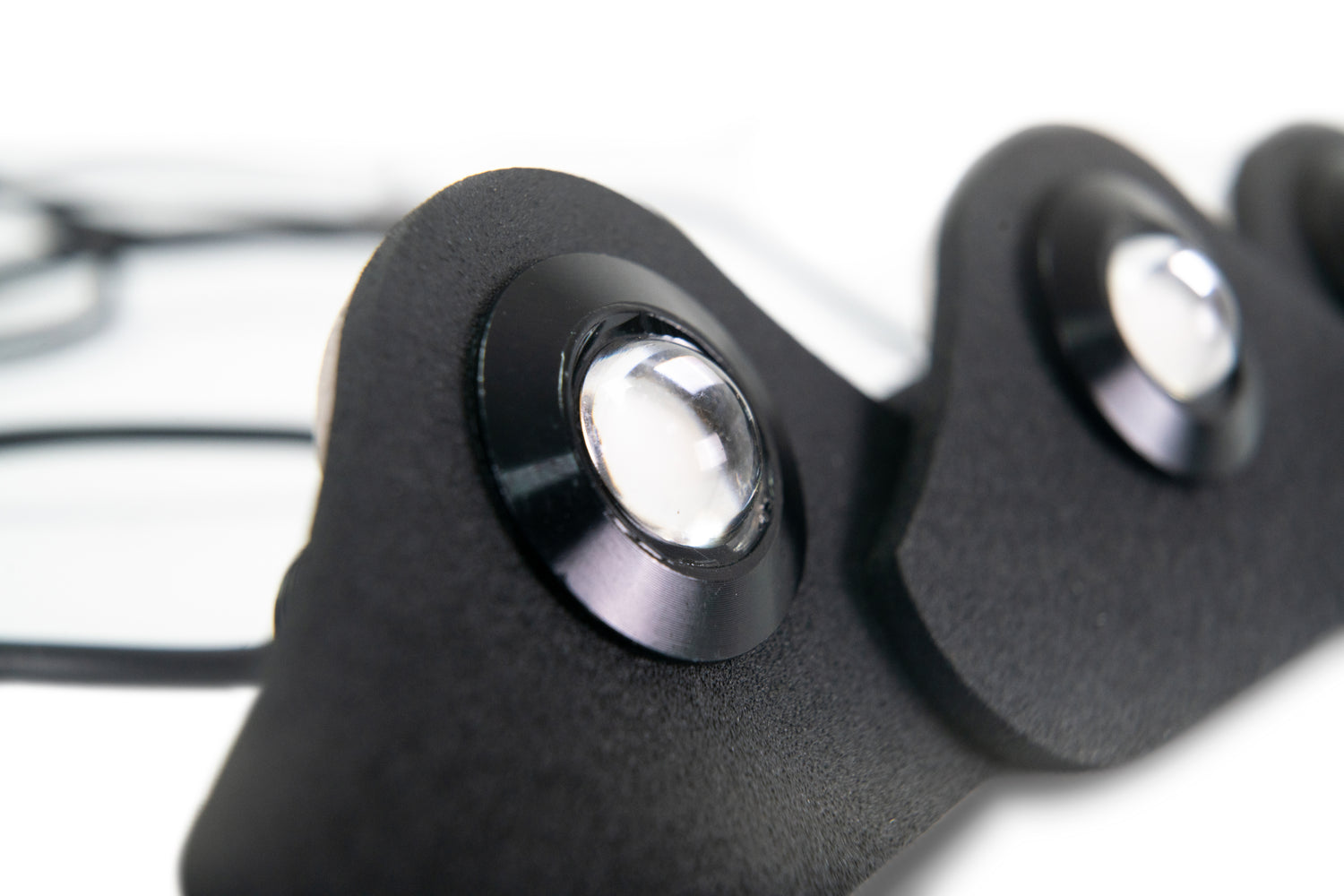 The DV8 Jeep Wrangler Grille lights give you that presence and visibility that you need offroad. Our three bracket design will allow you position the three high powered LEDs in your grille how you see fit. Our proprietary design allows the lights to be protected from debris or the elements but remain in sight from almost all angles. Whether you are pass through dust, snow, or rain; our LED grille lights will ensure your Jeep can be seen.
