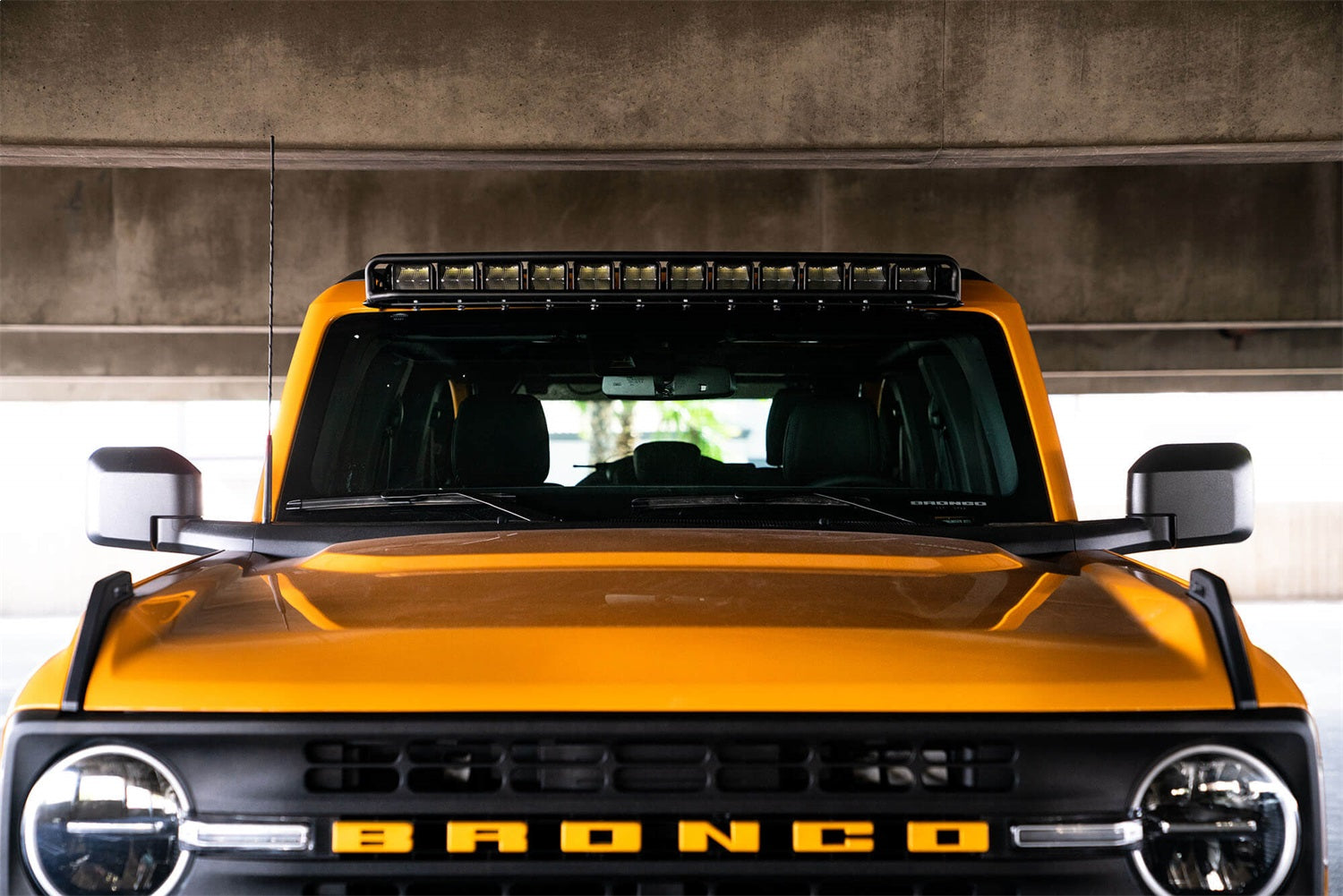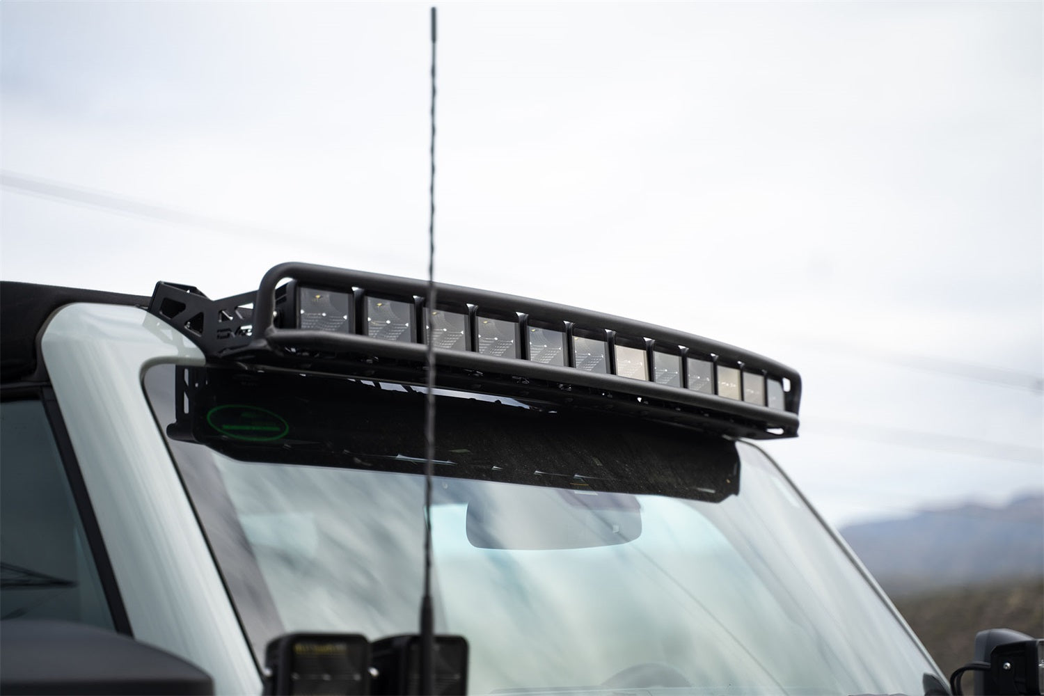 Note: Over-windshield light bar mounts are not recommended for soft top equipped Broncos due to wind noise.