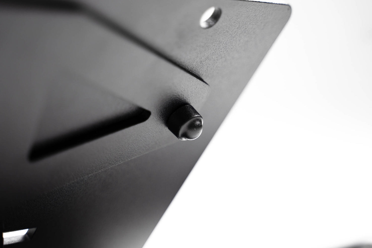 Our Front License Plate Mount relocates your plate at the center of your bumper and out of the way of the grille. This allows for maximum airflow to the engine compartment. It was designed to be located in a more aesthetic position, giving a full view of the OEM Capable Steel Bumper. It mounts at a steep angle to allow maximum clearance. The bracket was finished in a micro-texture black powder coat, and features a simple bolt-on installation. * Please Note: This ONLY fits the OEM Capable Steel Bumper. This Does Not Fit the HD Modular Steel or Plastic Bumpers.