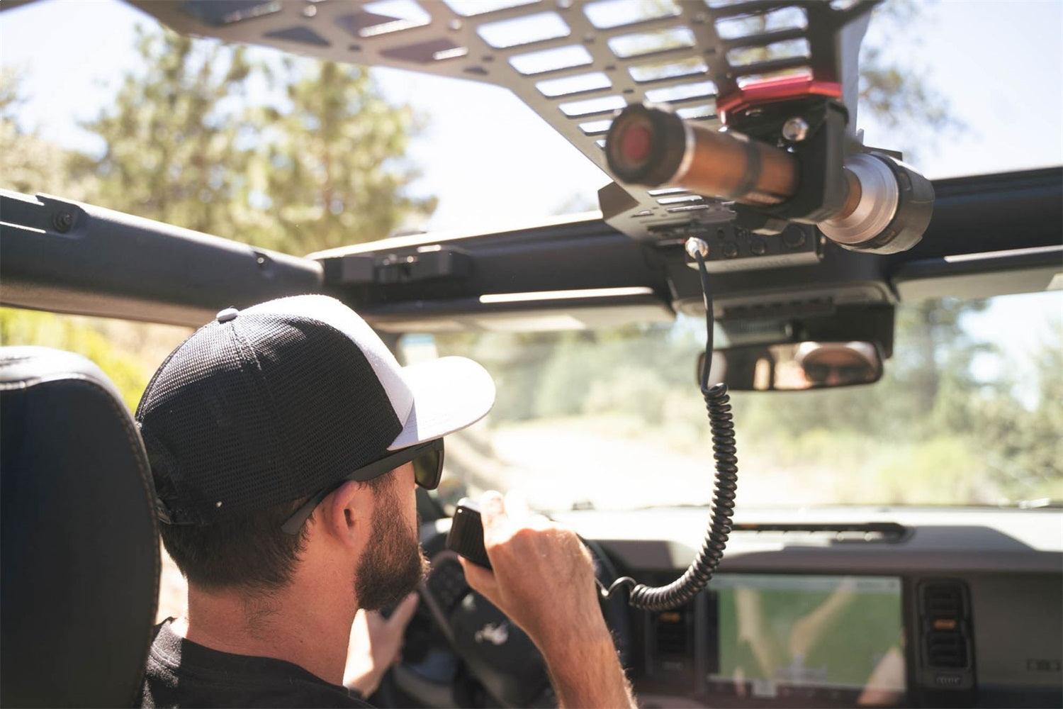 Our Overhead Molle Panel provides a wide variety of storage & accessory mounting solutions. The panel utilizes multiple factory mounting points for an easy installation, which also keeps the panel rigid and secure. The molle pattern is compatible with a variety of attachment systems such as straps, molle accessories, bolts, RAM Mounts, & others. Our system is perfect for molle bags, CB or race radios, phone/tablet holders, gun holsters, knife sheaths, and any other gear you want on the road or trail. The top of the panel is flared, enabling you to stow small items like blankets, bags, and other gear. The 1-inch thick tube can be used as a rear grab handle or as an additional mounting opportunity. Slotted holes in multiple locations can be used for things like Baja Designs dome lights or other accessories that have varying-width mounting points. * Please Note: This is compatible with Hard or Soft Top 4-Door models only. It is not compatible with 2-Door models.