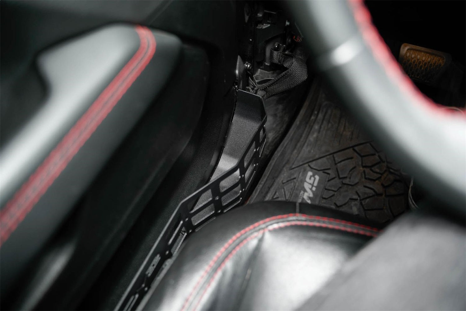 Our Front Door Molle Panel Pockets were designed to replace the weak, saggy OEM door nets. The front panel protrudes outwards to maximize space for a water bottle or similar sized object. The molle panel design allows for multiple gear mounting solutions for things like tools, a pocket knife, a holster, & other daily gear. No need to remove the door panel for installation, as these feature a snap-in design with locking tabs to secure the molle pocket into place. This also means that they can be easily removed if needed. The panels' design flows well with interior styling, and are finished in a micro-texture black powder coat. We also make Rear Door Molle Panel Pockets for a full net replacement solution. * Please Note: Cutting/Removal of factory netting required for installation.