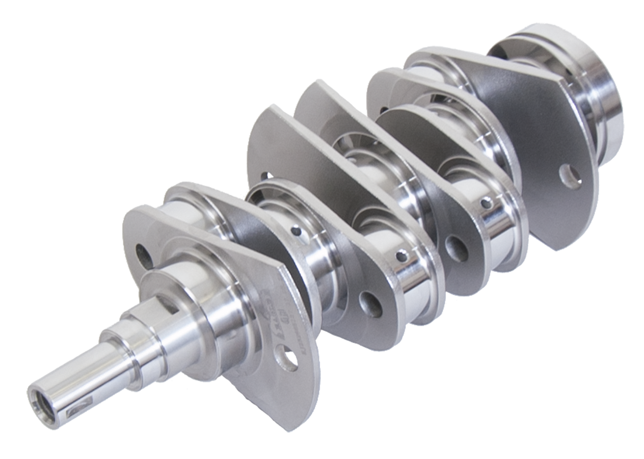 Eagle Billet 4340 steel crankshafts feature .125" fillet radiuses for superior strength so chamfered / narrowed bearings required, nitrided surface and micropolished.