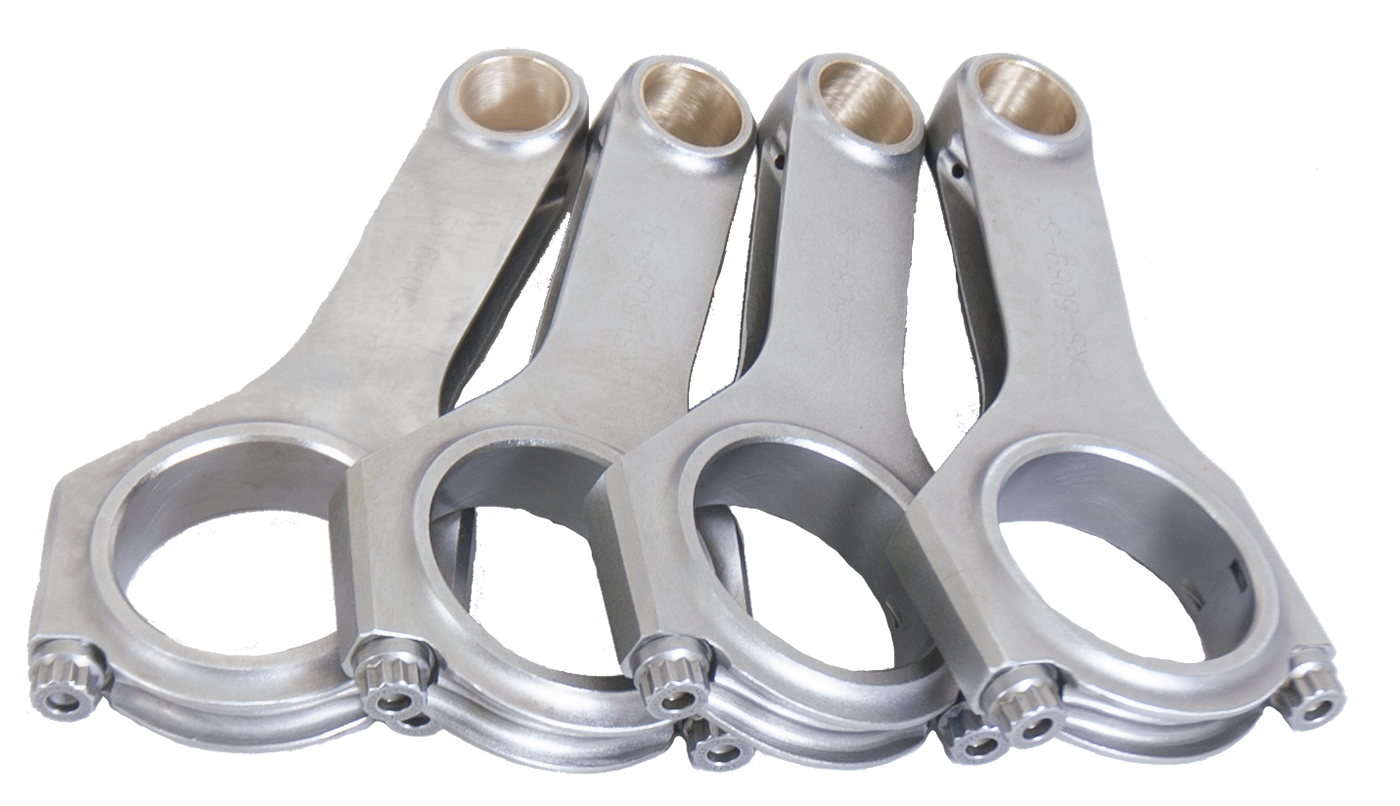 Forged 4340 steel H-Beam connecting rods are forged from a two-piece forging and feature a fully machined and shot-peened surface. Sizing is held to exact tolerances. Sold as a weight-matched set. Equipped with ARP 2000 bolts for even more power-handling capability. Recommended for competition use.