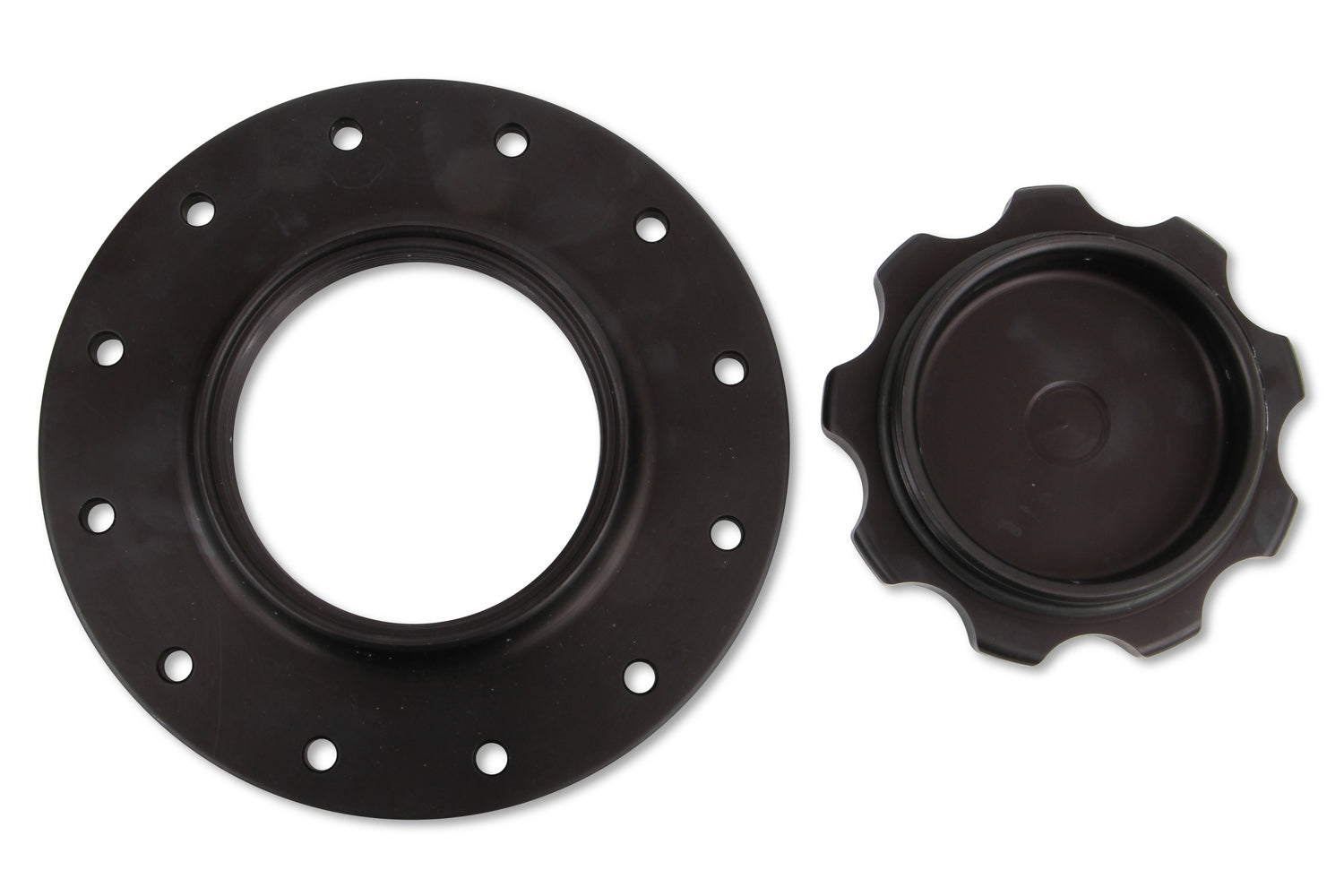 Fuel Filler Cap Assembly - Screw-On Cap - Vented - Flat Cell Mount - Aluminum - Black Anodized - 12-Bolt Fuel Cells - Kit