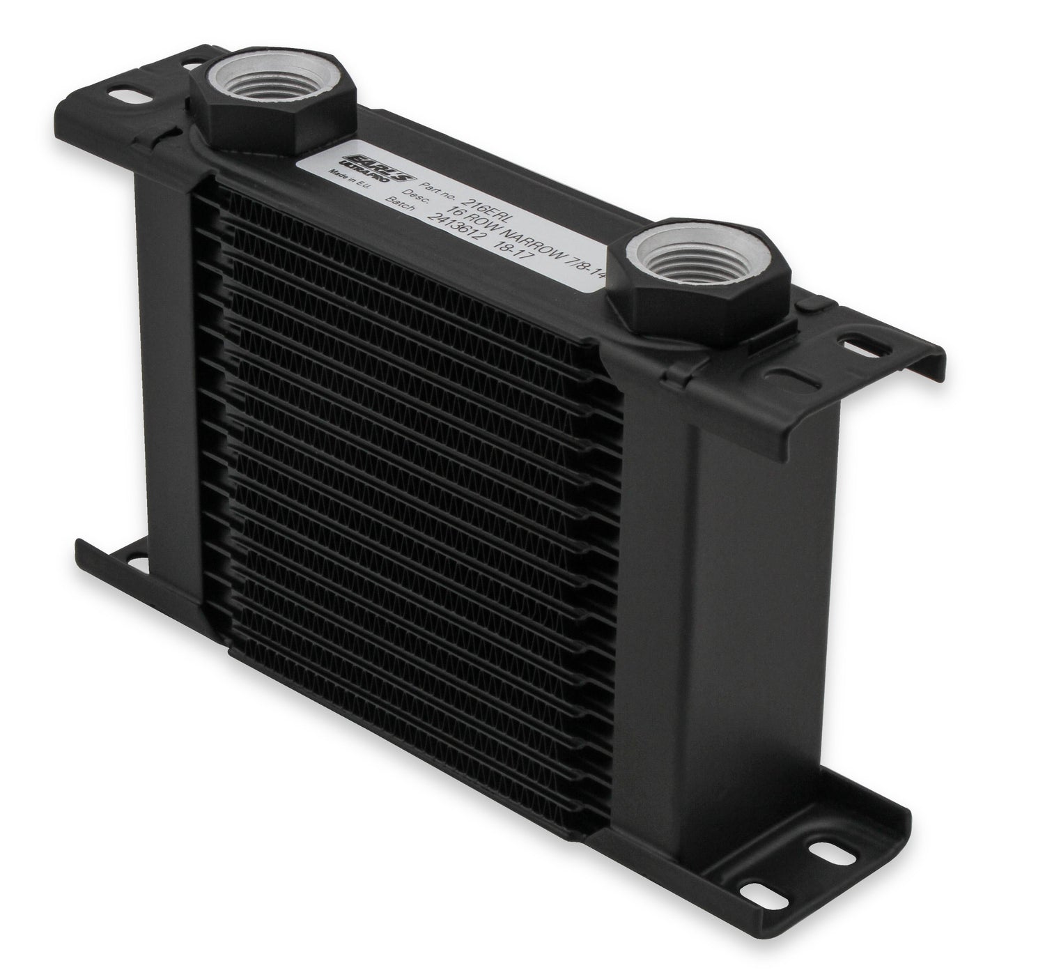 Earls new premium quality UltraPRO oil coolers are ideal for all high performance applications. These aluminum stacked plate style coolers are made using state of the art brazing techniques for a durable and long lasting premium cooler that is highly efficient w/ minimal pressure drop. These coolers are available in 30 sizes for all applications (i.e. engine oil cooler, transmission cooler, power steering cooler, valve spring cooler, differential / gearbox cooler, etc.). Three fan pack style coolers are now also available w/ a premium cooling fan & shroud. These coolers feature -10 AN O-ring female ports and are used with special ORB cooler fittings (-6 AN, -8 AN, -10 AN, or -12 AN) and AN hose ends. Earls will also now stock coolers w/ -16 AN male flares brazed on the cooler for applications that require larger ports for additional oil flow. Black Finish.