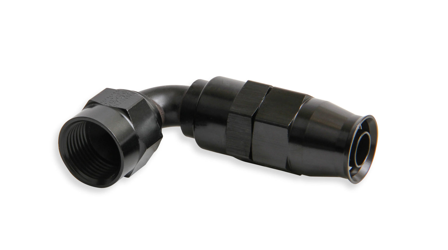 UltraPro 90 Deg. Twist-On AN Hose End; Fitting Size: -16AN Female Swivel; Hose End Size: -16AN; Bent Tube; Anodized Black; Aluminum;