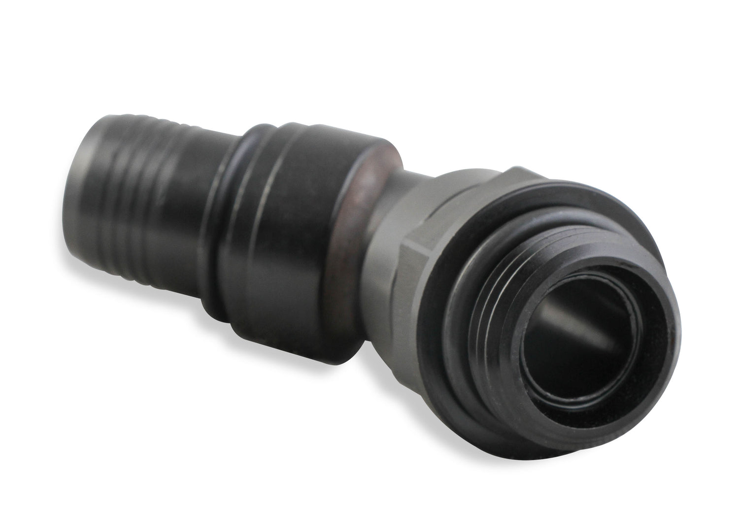 UltraPro 45 Deg. Crimp-On AN Port Hose End; Fitting Size: 3/4-16 in. [ -8AN] O-Ring Port Swivel; Hose End Size: -10AN; Anodized Black; Aluminum;