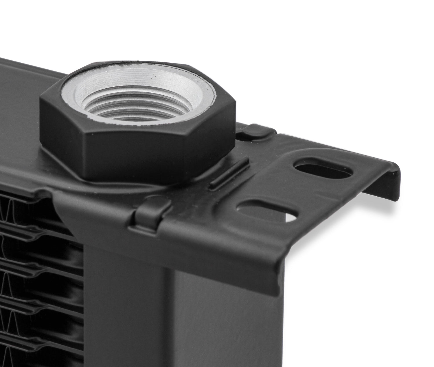 Earls new premium quality UltraPRO oil coolers are ideal for all high performance applications. These aluminum stacked plate style coolers are made using state of the art brazing techniques for a durable and long lasting premium cooler that is highly efficient w/ minimal pressure drop. These coolers are available in 30 sizes for all applications (i.e. engine oil cooler, transmission cooler, power steering cooler, valve spring cooler, differential / gearbox cooler, etc.). Three fan pack style coolers are now also available w/ a premium cooling fan & shroud. These coolers feature -10 AN O-ring female ports and are used with special ORB cooler fittings (-6 AN, -8 AN, -10 AN, or -12 AN) and AN hose ends. Earls will also now stock coolers w/ -16 AN male flares brazed on the cooler for applications that require larger ports for additional oil flow. Black Finish.