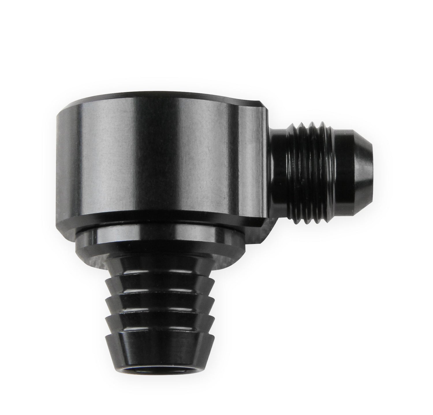 .588" Barb for Booster Grommet (fits Grommet w/ 13/16" OD on Booster), -6 AN Male Flare for Engine Vacuum, Black Anodized Finish, Use w/ -6 AN Style Vacuum Hose
