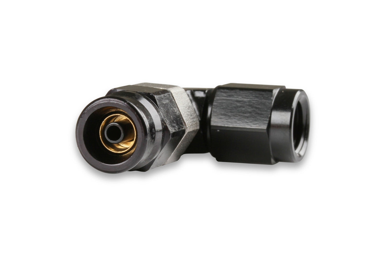 Speed-Seal™ 90 Deg. AN Hose End; Fitting Size: -3AN Female; Hose End Size: -3AN; Adjustable; Low Profile; Anodized Black; Aluminum; Bagged Packaging;