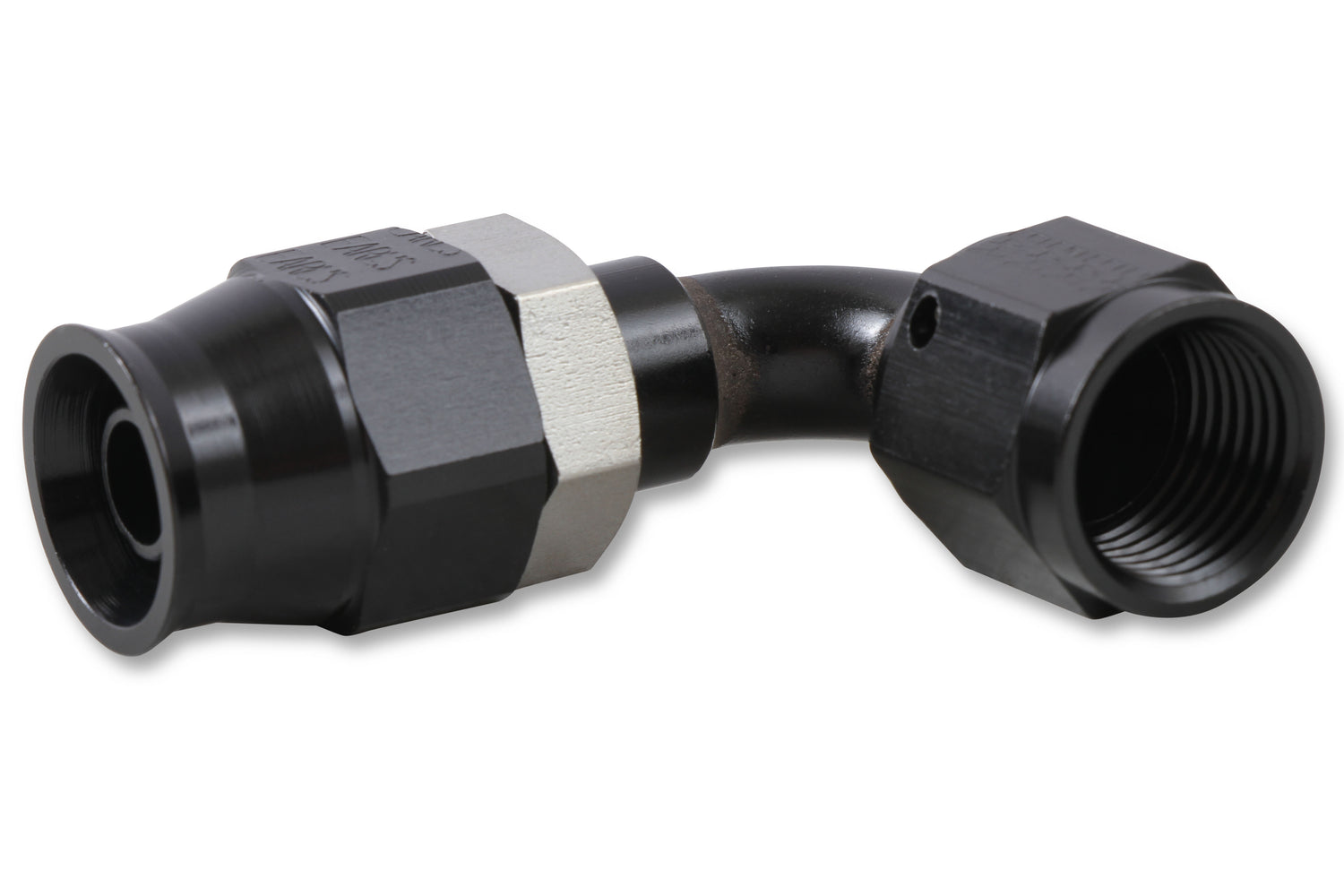 Speed-Seal™ 90 Deg. AN Hose End; Fitting Size: -6AN Female; Hose End Size: -6AN; Adjustable; Anodized Black; Aluminum; Bagged Packaging;