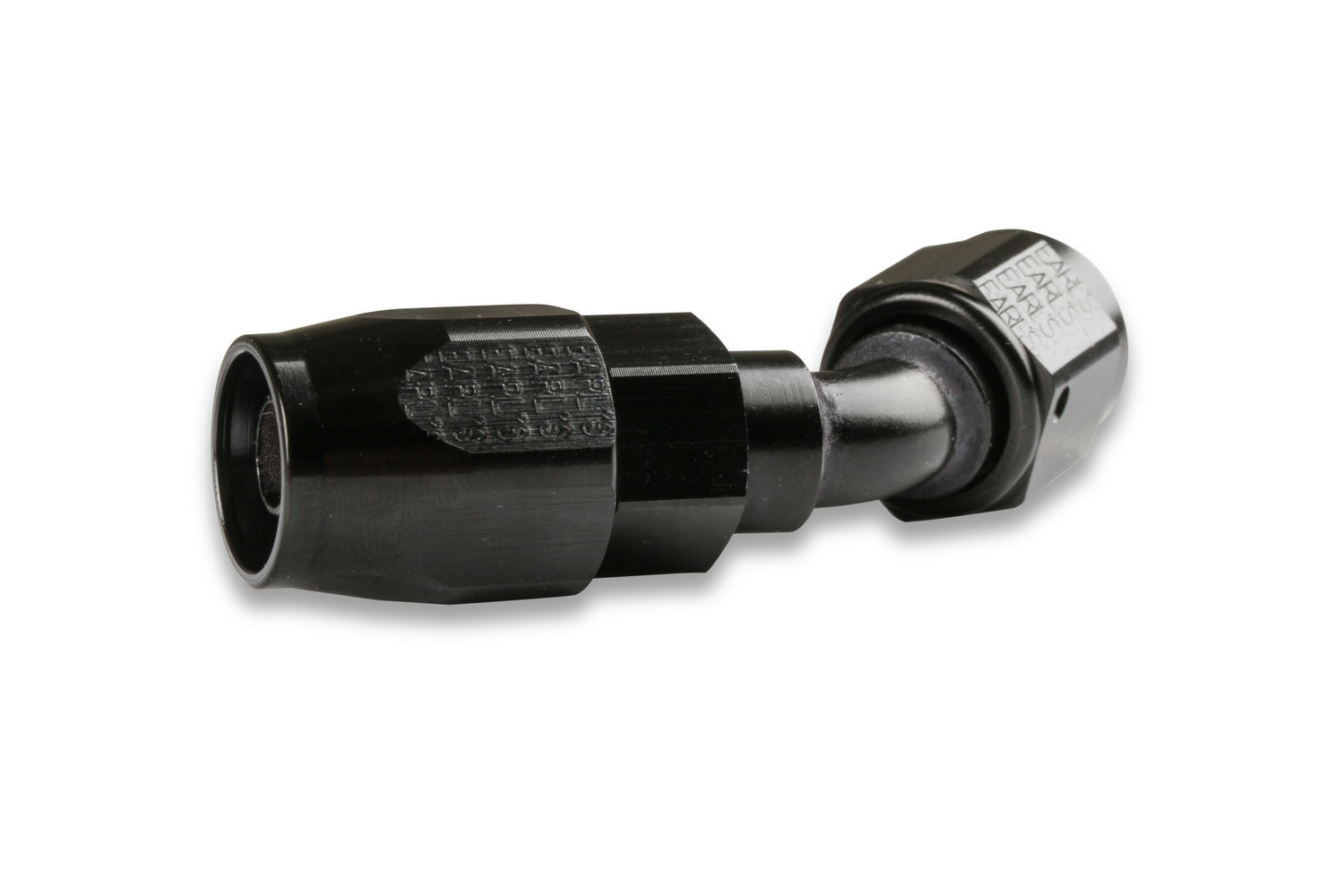 Swivel-Seal™ 45 Deg. AN Hose End; Fitting Size: -12AN Female; Hose End Size: -12AN; Anodized Black; Aluminum; Bagged Packaging;