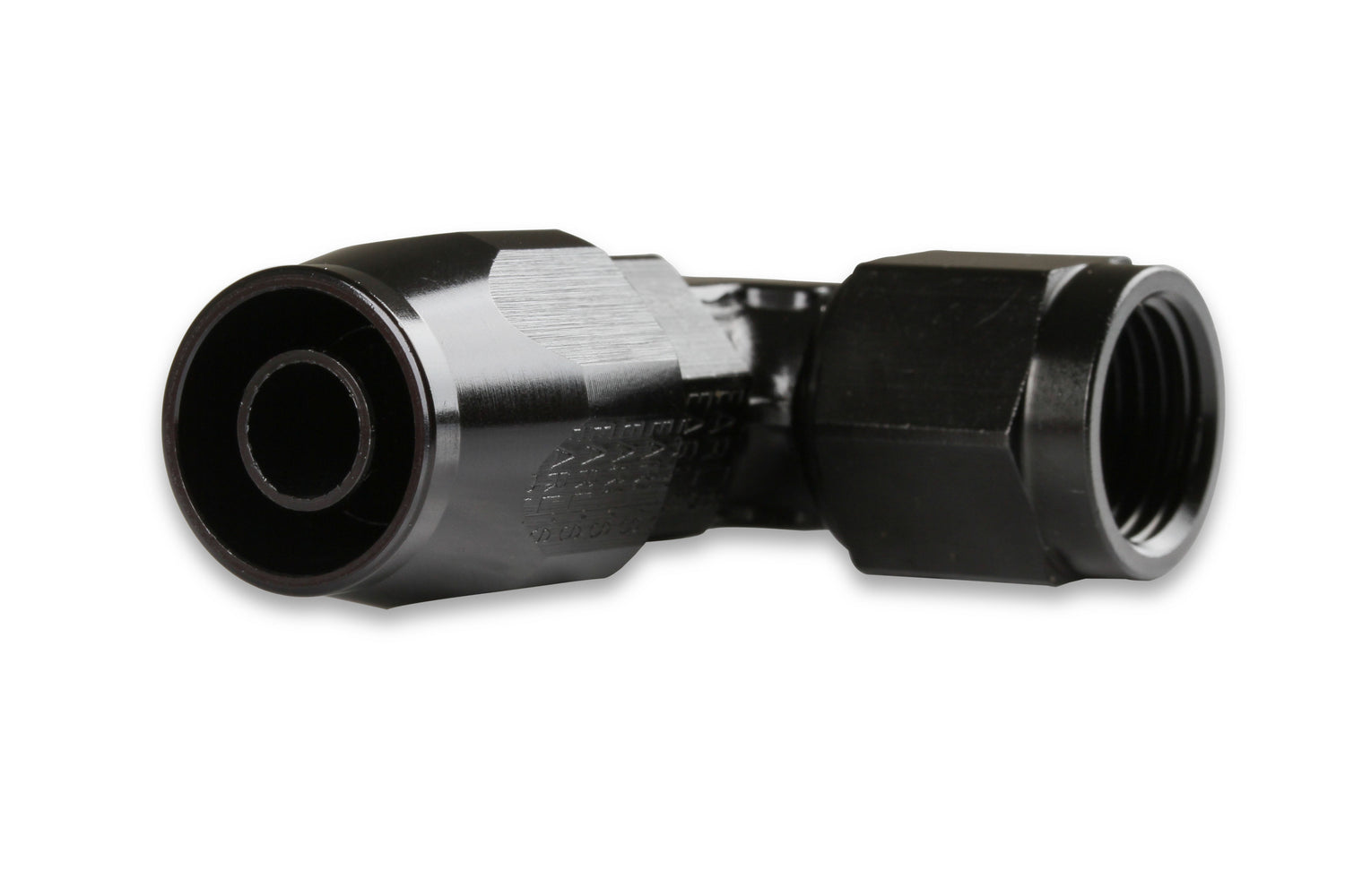 Swivel-Seal™ 90 Deg. AN Hose End; Fitting Size: -10AN Female; Hose End Size: -10AN; Low Profile Design; Anodized Black; Aluminum; Bagged Packaging;