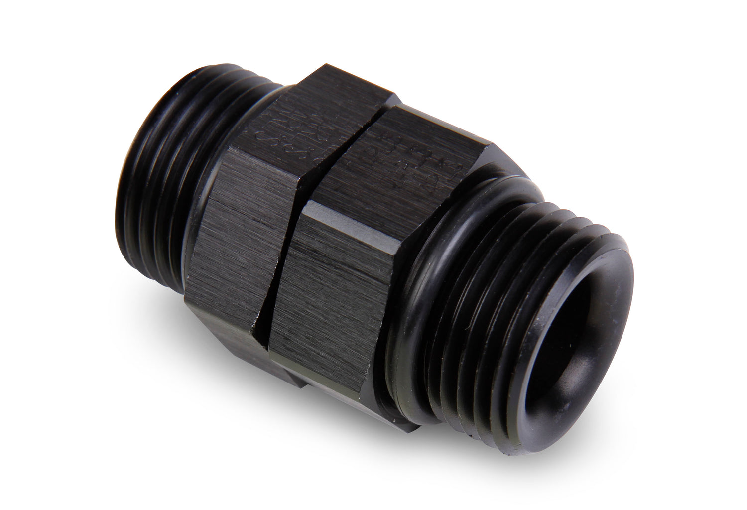 Aluminum O-Ring Port Swivel Union; Size: -12AN Male Swivel to -12AN O-Ring Port Male; Anodized Black; Bagged Packaging;