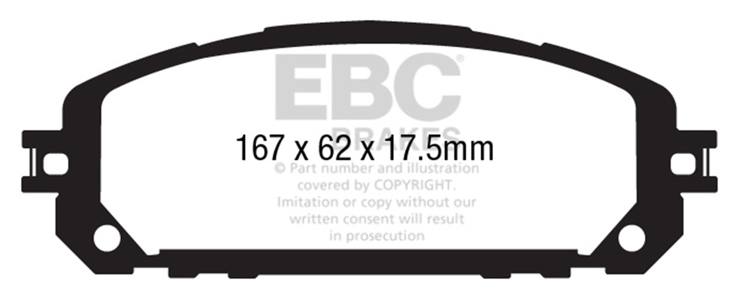 6000 Series Greenstuff Truck/SUV Brakes Disc Pads; FMSI Pad No. D1709; Vented; 330mm Dia.; 40mm Height; 28mm Thick; Pad Dimensions: 167 x 62 x 17.5mm;